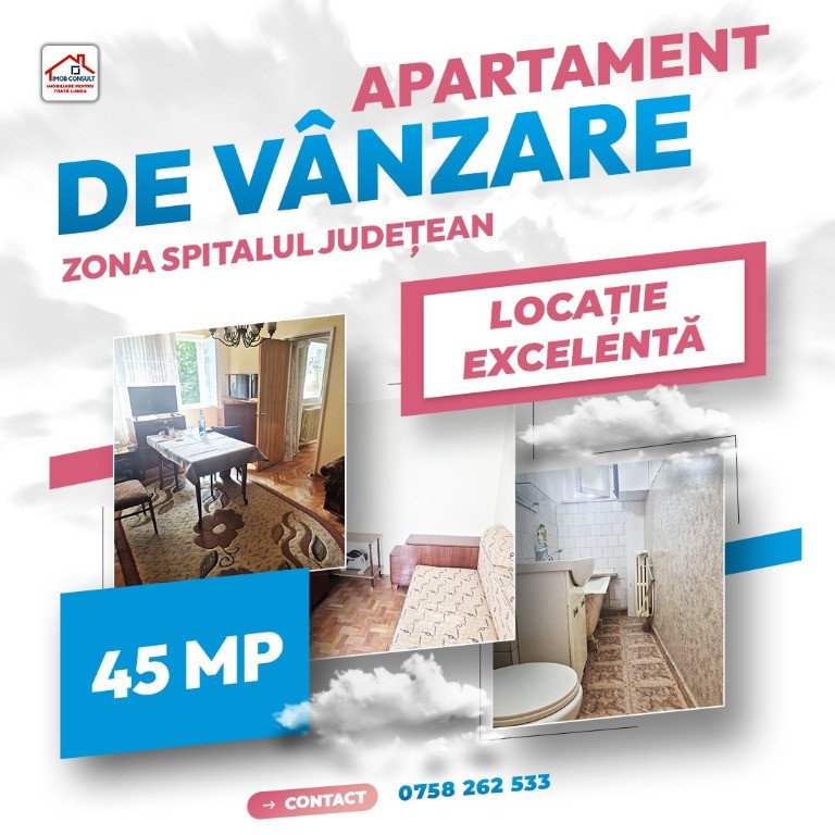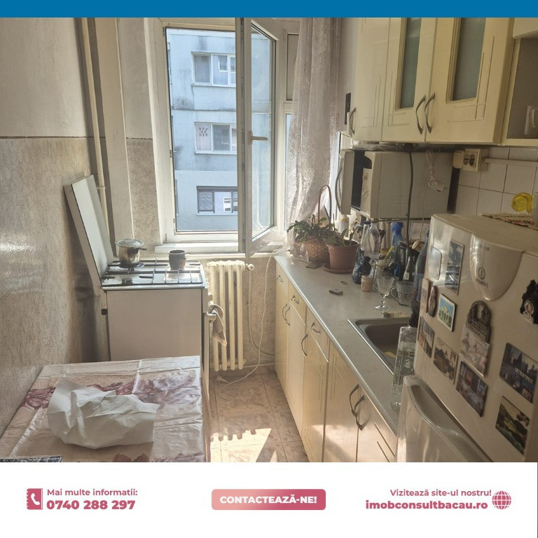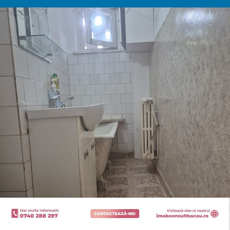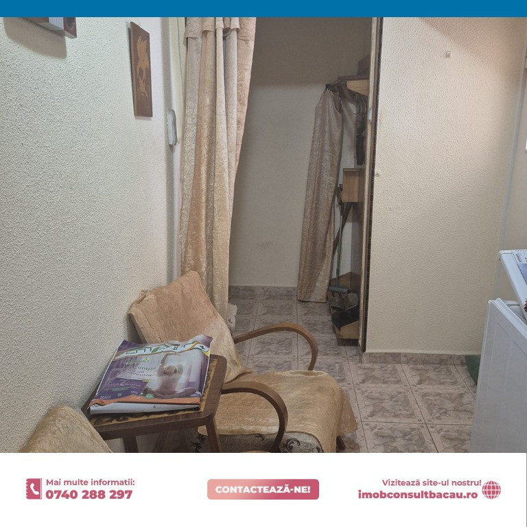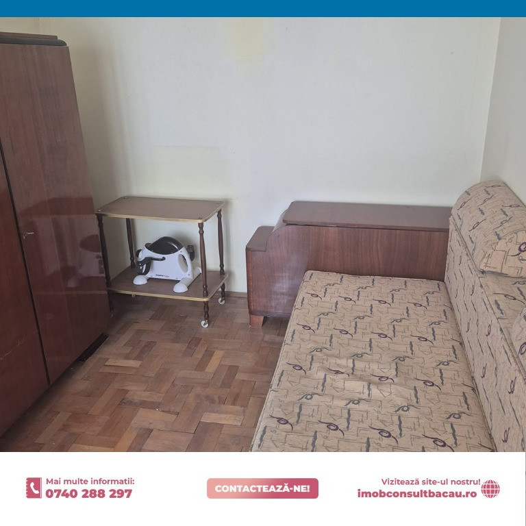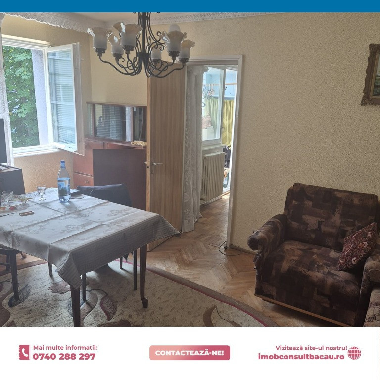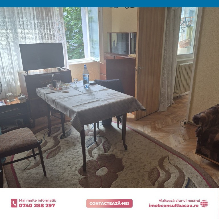 Cauți un apartament bine poziționat, aproape de tot ce contează? Aceast imobil este ideală pentru locuit sau investiție, având un preț imbatabil și acces rapid la punctele de interes ale orașului! De ce acest apartament? Pentru că este situat în zona Tic-Tac, aproape de Spital, Universitatea "Vasile Alecsandri", Colegiul Național Pedagogic "Ștefan cel Mare", Parcuri și aproape de Piața Sud – o locație potrivită pentru familii, studenți sau oricine își dorește acces rapid la facilități! Caracteristici : - Suprafață totală: 45 mp ; - Etajul 3 din 4; - Living spațios și luminos – perfect pentru relaxare; - Dormitor primitor și confortabil – cu multă lumină natural; - Bucătărie complet echipată – pregătită pentru gătit; - Baie cu geam; - Balcon închis și generos – perfect pentru depozitare sau relaxare; - Centrală termică proprie pe gaz – eficiență energetică și costuri reduse. Avantaje de top ale locației: - Spitalul Județean – acces rapid la servicii medicale.; - Universitatea "Vasile Alecsandri" – ideal pentru studenț; - Colegiul Național Pedagogic "Ștefan cel Mare" – aproape de licee și școli; - Parcuri și zone verzi – ideale pentru plimbări și relaxare; - Piață, supermarketuri și magazine – cumpărături la îndemână; - Transport public – conexiuni rapide spre toate zonele orașului. Profită de această ocazie unică! Contactează-mă acum pentru o vizionare! - Corina: 0740 288 297; - Lacramioara: 0758 262 533, sau la sediul agenției noastre, Imob Consult Bacau, situat pe strada Banca Națională nr. 27 la intersecția cu Str. Neagoe Vodă, langa Irish Pub.