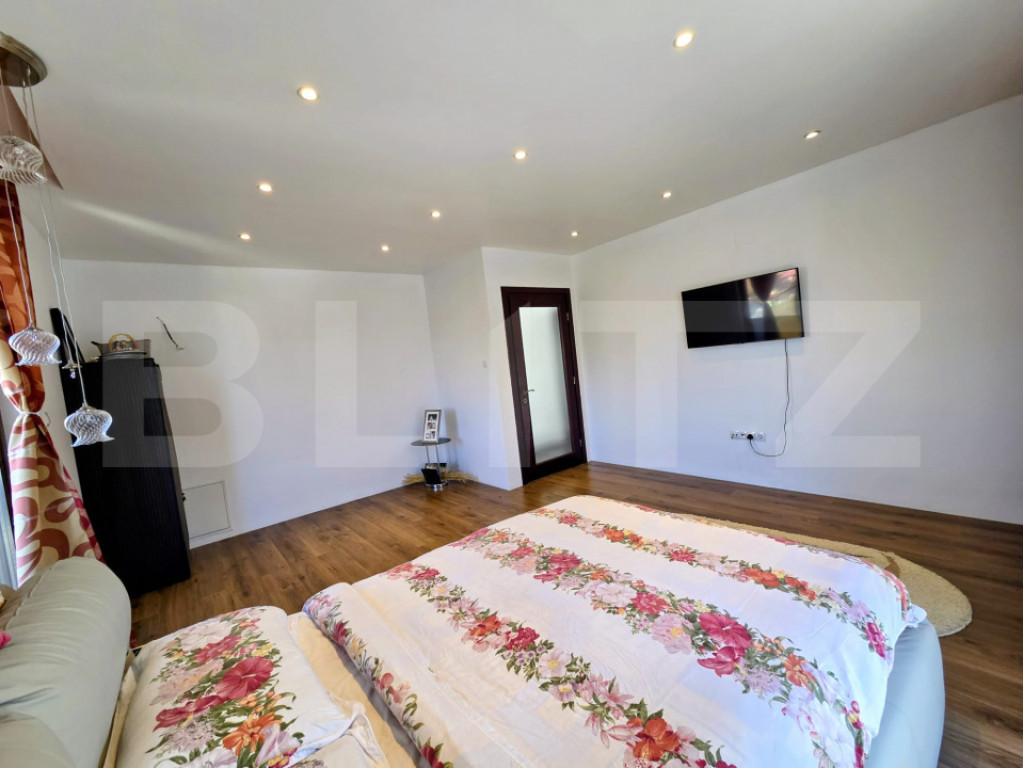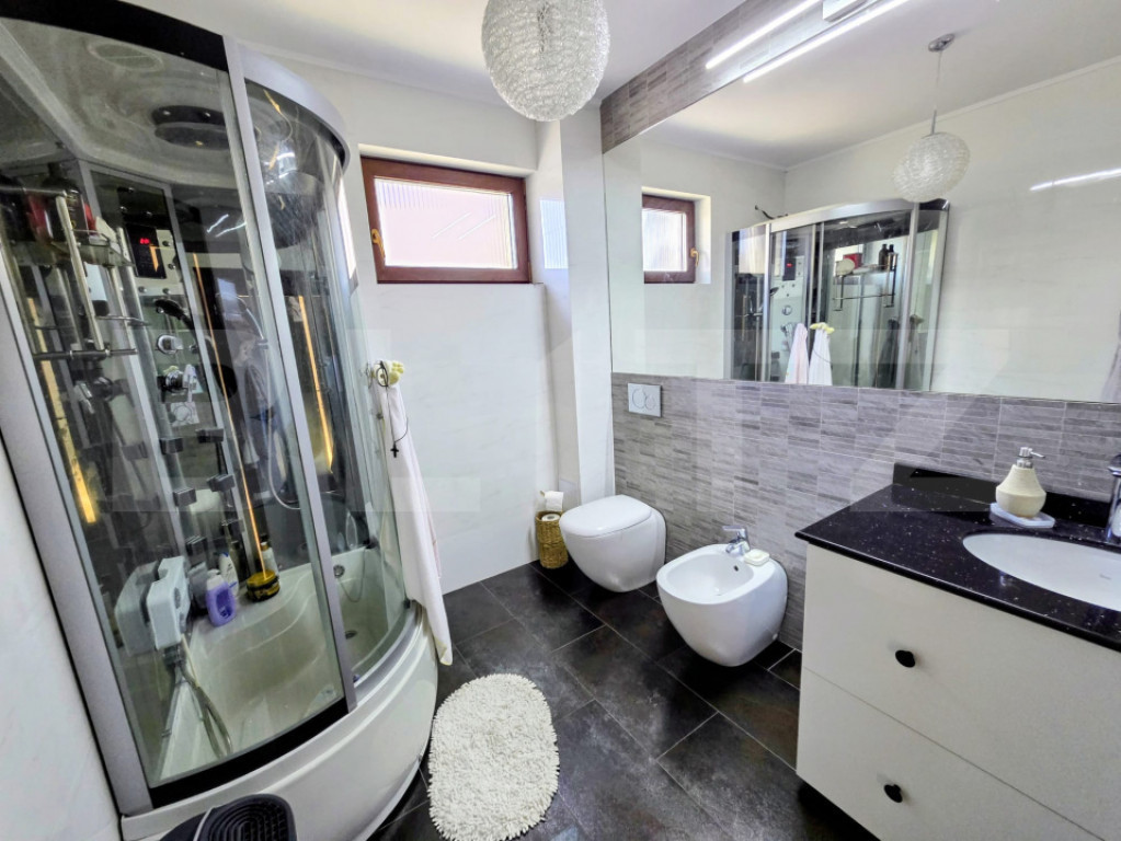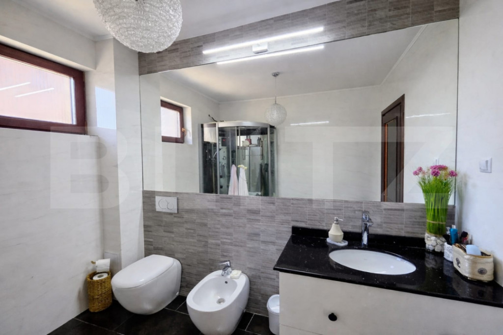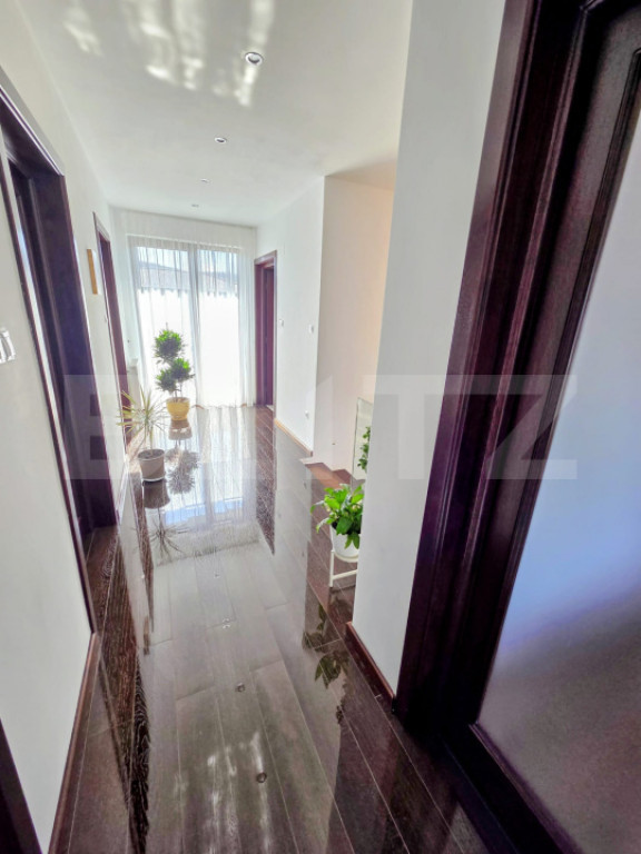 Blitz va prezinta o proprietate specială, situată într-o zonă aerisită, liniștită, aproape de stația de autobuz, strada principală și centura Donath Park, care oferă acces rapid în cartierul Grigorescu din Cluj-Napoca. Această casă este ideală pentru cei care își doresc spațiu, confort și un stil de viață relaxat aproape de oraș. ???? Caracteristici generale Suprafață utilă: 168 mp Teren: 531 mp (inclusiv amprenta casei) Regim: Parter + Etaj Finalizată: 2017 Mobilată complet Construcție solidă, extrem de îngrijită ???? Exterior și grădină Proprietatea se remarcă prin spații exterioare generoase și bine amenajate: Grădină în fața și în spatele casei Terasă pentru relaxare Zonă de grătar pentru seri plăcute alături de familie și prieteni Gazon îngrijit Poartă electrică la intrare Zonă aerisită și priveliște deschisă ???? Compartimentare și interior Parter: Bucătărie separată Living spațios Cameră suplimentară Cămară Baie Etaj: 3 dormitoare 2 balcoane de cca 13 mp fiecare Baie Dressing Dormitor matrimonial cu balcon cu sticlă securizată 13 cm Detalii suplimentare: Tavane din gips-carton Uși interioare din stejar masiv Ferestre Rehau cu 7 camere și 3 sticle, asigurând izolare fonică și termică superioară ???? Dotări și sisteme de încălzire Încălzire în pardoseală în zonele cu gresie Calorifere în restul casei 2 centrale: pe peleți + panouri pentru apă caldă si centrala pe gaz Șemineu real pe lemne Curent monofazic ???? Materiale și construcție Cărămidă Wienerberger 25 cm Fundație de beton solidă Izolație polistiren EPS 80 – 10 cm + tencuială decorativă 2 mm Acoperiș lemn + învelitoare Această proprietate a fost construită cu materiale de cea mai bună calitate, de la fundație până la finisaje, pentru confort și durabilitate. ???? De ce să vizionezi această casă Această locuință nu este doar o casă, ci un cămin cu personalitate, unde te poți relaxa în grădină, în zona de terasă sau lângă șemineu, și unde fiecare cameră oferă spațiu generos și intimitate. Este ideală pentru o familie care caută calitate, confort și acces rapid la oraș, într-o zonă verde și liniștită. ???? O vizionare merită tot efortul – casa vorbește de la sine! Cod ofertă / ID BLITZ: P166597 Id intern: P166597