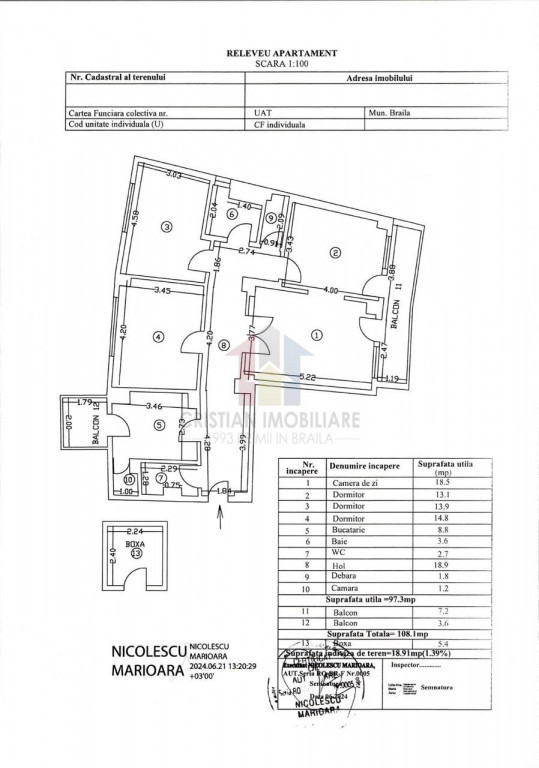 * EXCLUSIVITATE! FOARTE SPATIOS! 108 MP, apartament 4 camere confort 1 decomandat Esplanada Dunarii,etaj 1, * Vedere catre Esplanada Dunarii * Doua grupuri sanitare * Doua balcoane,7,2 m 3,6 * Centrala termica * Termopan exterior * Vedre la Dunare Muntii Macinului * Terasa de 40mp * Boxa la subsol * Liber * Posibilitate amenajare dupa bunul plac Cristian Imobiliare - din 1993 Primii in Braila CRS8174 amp;12