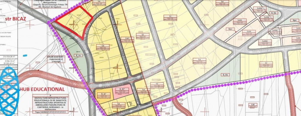 Blitz oferă spre vânzare teren situat într-o zona rezidențială de case si vile, din cartierul Borhanci-Sopor zona HUB educational. Terenul are o suprafață de 2000 mp front la 2 drumuri publice, str BICAZ respectiv artera strada in PUZ. Dispune de Extras de Carte Funciara si PUZ-ul in lucru, parcela fiind încadrată in subzona S-Et, regimul de înălțime este (1-3S)+P+5+1R, POT-ul 50% si CUT-ul 2.8 Cod ofertă / ID BLITZ: P3628 Id intern: P3628