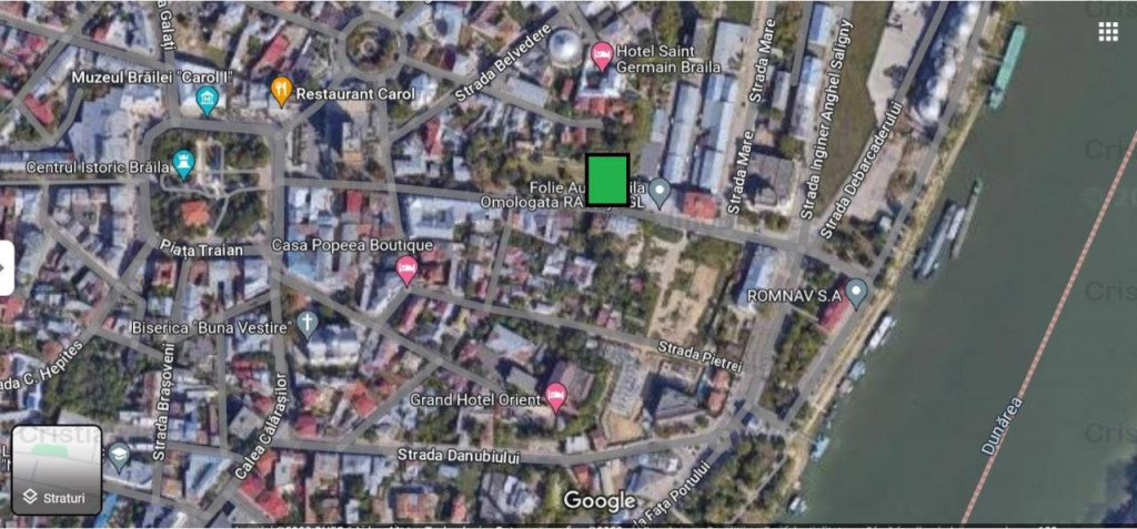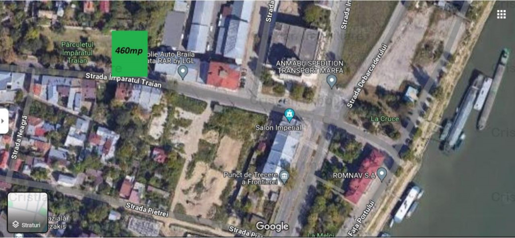 Teren zona faleza Dunarii *Suprafata totala 460 mp *Deschidere la strada principala 17m *Posibilitate utilitati *Cadastru *Certificat urbanism care certifica posibilitatea executarii de constructii *Pret 160 euro/mp Cristian Imobiliare - din 1993 Primii in Braila CRS3205 amp;10