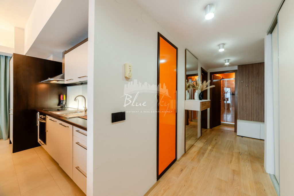 Descoperă confortul și rafinamentul în acest apartament de 2 camere situat la etajul 10 al Complexului Spectrum Residence, cu o vedere frontală superbă la mare. Cu o compartimentare inteligentă, acest apartament dispune de un dormitor spațios cu baie proprie, un living open space ce integrează perfect o bucătărie modernă și o zonă de luat masa, o baie suplimentară și o terasă generoasă de 12 mp. Beneficiind de un design de lux și de mobilier de calitate, apartamentul este complet utilat, oferindu-ți tot confortul de care ai nevoie pentru a te simți ca acasă. În plus, ai și un loc de parcare asigurat în parcarea subterană a complexului, pentru o experiență deosebită de rezidență. Alege să trăiești într-un spațiu elegant, modern și confortabil, unde priveliștea la mare îți va încânta simțurile în fiecare zi. O oportunitate unică de a locui într-unul dintre cele mai exclusive complexe rezidențiale, ce te invită să te bucuri de viața la cote înalte. Apartamentul este disponibil pentru semnarea unui contract pana la 1 mai. Id intern: P3081