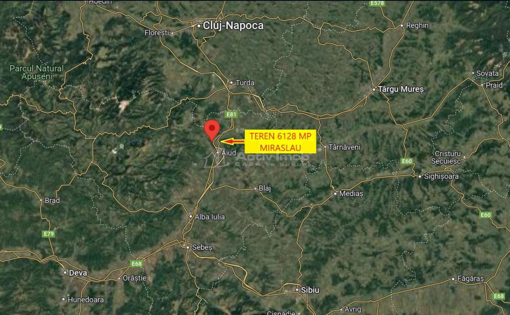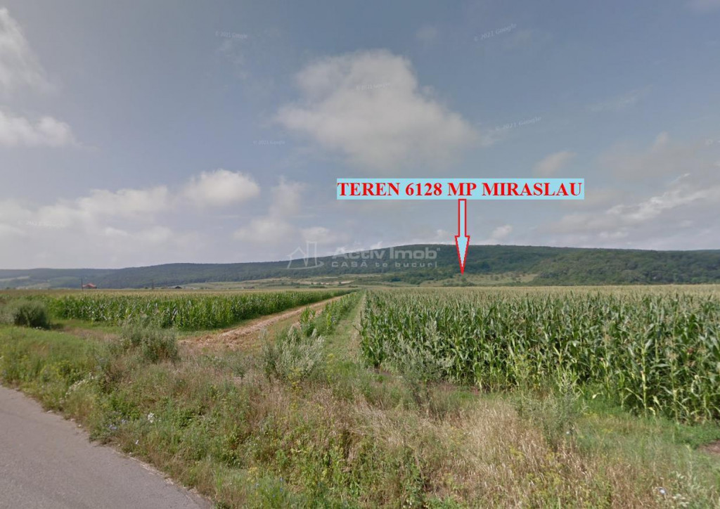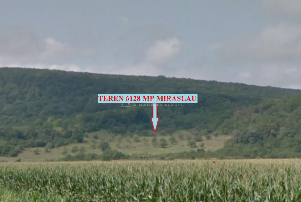 Vand teren extravilan faneata, intabulat, in suprafata de 6128 mp, situat in comuna Miraslau, la 850 de metri de drumul national, in marginea padurii, pe fata unui deal cu expunere estica, avand o panorama frumoasa asupra satului si vaii Muresului. Are acces pe drum de pamant. Locatia poate fi vizualizata pe google.maps.ro, punand in fereastra de cautare aceste coordinate GPS: 46deg;21#39;04.7quot;N 23deg;41#39;34.2quot;E Pretabil livada, loc de iesire in natura. Pretul este 8128 euro. Actele sunt in regula, fara sarcini sau obligatii. Se poate vinde urmand procedura legala pentru vanzarea terenurilor agricole situate in extravilan. Pentru alte informatii sau pentru vizionare, va rog sa ma contactati telefonic. ID ACTIV IMOB: 231133 Ca sa te bucuri!!!