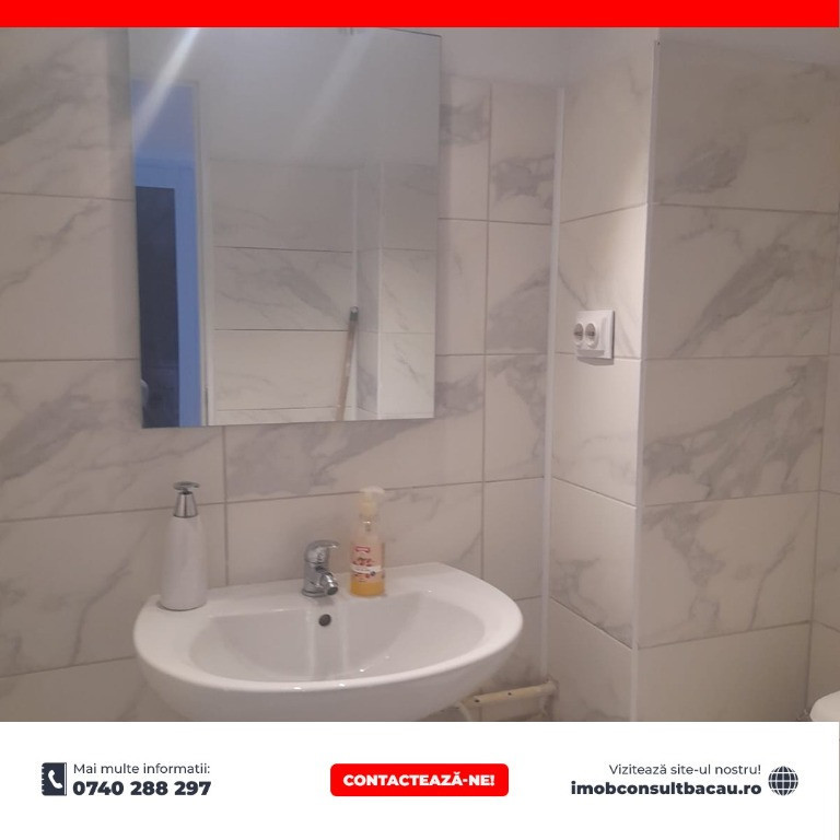 Fii primul chirias al acestui apartament premium situate in blocul Adama! Detalii esentiale: - Primul chiriaș; - Totul nou; - Locație modernă, confort absolute; - Zonă: Ștefan cel Mare – Bloc Adama. - Clădire nouă. Etaj 8 dintr-un imobil cu 4 lifturi rapide. - Compartimentare: 2 camere spațioase, 2 băi elegante. - Dotări: canapea și saltea nouă. Mobilier și electrocasnice moderne. Ambianță: spațiu luminos, finisaje premium. Pentru vizionari si informatii suplimentare contacteza-ne la nr. de tel: - Lacramioara: 0756 410 706; - Corina: 0740 288 297, sau la sediul agenției noastre, Imob Consult Bacau, situat pe strada Banca Națională nr. 27 la intersecția cu Str. Neagoe Vodă, langa Irish Pub.