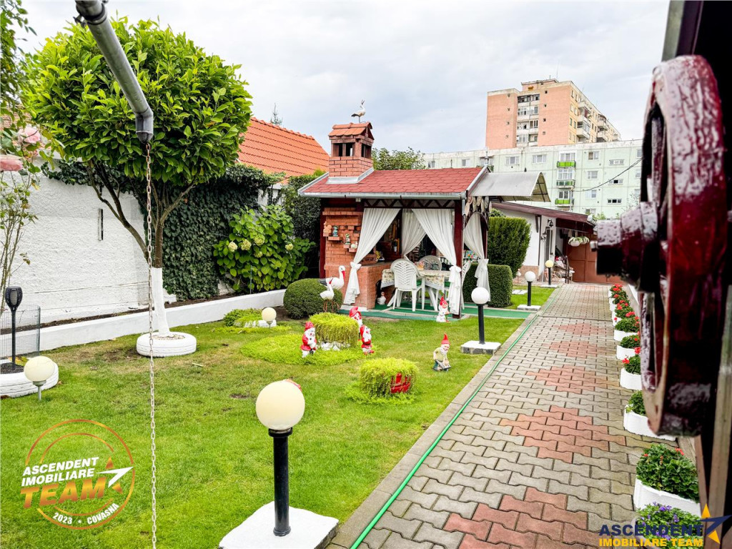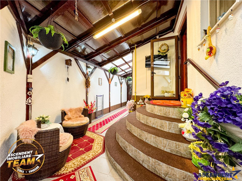 Comision cumparator: 0% ASCENDENT IMOBILIARE are deosebita placere sa va prezinte o proprietate unica, situata pe strada Voican, in municipiul Sfantu Gheorghe, judetul Covasna ndash; un adevarat colt de liniste si rafinament. Aceasta casa cocheta, cu o suprafata utila de 108 mp si un teren generos de 333 mp, imbina armonios confortul modern cu atmosfera calda a unui camin primitor. Inca de la intrare, proprietatea te imbie sa o descoperi pas cu pas, intr-un cadru intim si bine gandit. Diminetile pot incepe cu o cafea savurata in foisorul din curte sau pe terasa insorita, in timp ce te bucuri de aerul curat si parfumul florilor din gradina proprie. Casa este mobilata cu gust in stil mediteranean si este dotata complet pentru a oferi un nivel ridicat de confort in orice anotimp. Izolatia exterioara (18 cm polistiren) contribuie la mentinerea unei temperaturi placute, reducand considerabil costurile energetice. Utilitati complete: Incalzire centrala Apa din sursa proprie si retea Gaz, curent, canalizare Internet prin fibra optica Compartimentarea inteligenta ofera: 2 dormitoare spatioase si luminoase Living primitor Bucatarie cu zona de dining Baie mare cu fereastra pentru aerisire naturala Hol de acces generos Acoperisul inalt permite amenajarea a inca doua camere si o baie, oferind flexibilitate pentru viitorii proprietari! Spatii si facilitati suplimentare: Gradina decorativa Foisor pentru relaxare Garaj acoperit Camera de recreere sau birou, anexata garajului Bucatarie exterioara complet utilata Pivnita Toate aceste elemente creeaza un ambient ideal pentru o viata echilibrata, fie ca este vorba despre o resedinta permanenta sau o casa de vacanta. Va invitam sa experimentati o prima vizionare, chiar din confortul propriei case, accesand materialele de prezentare: Film de prezentare: https://www.youtube.com/watch?v=5ni9jjrQMnc Tur virtual: https://my.matterport.com/show/?m=Uwi1VJe8d27 Aceasta proprietate este mai mult decat o casa ndash; este locul unde incepe povestea unui nou quot;ACASAquot;. Invitam colegii din domeniu la colaborare! Pentru detalii suplimentare si programari de vizionare, va stam la dispozitie: Alina Floroian ndash; 0760 566 472 (Telefon/WhatsApp) Moise Kincso ndash; 0738 691 312 (Telefon/WhatsApp) Mai multe informatii si oferte similare: www.ascendentimobiliare.ro