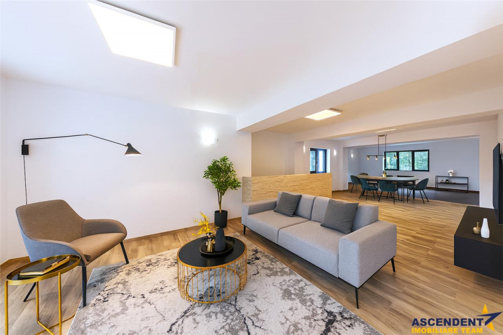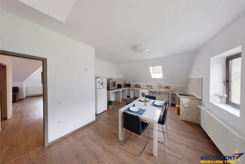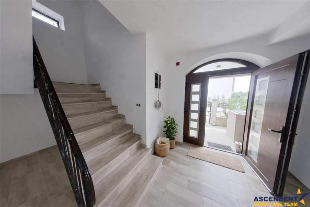 Comision cumparator: 2% tva ASCENDENT IMOBILIARE va propune spre vanzare o EXCLUSIVITATE materializata printr-o proprietate asezata intr-un cartier rezidential, de vile, la doar 5 km distanta de centrul Brasovului, denumit Bunloc. Va invitam sa experimentati o vizionare initiala, din locatia unde va aflati, chiar acum, prin accesarea turului virtual/ si a filmului de prezentare: Tur virtual tridimensional: https://my.matterport.com/show/?m=vHLrmXCBtTM Film prezentare: https://www.youtube.com/watch?v=YAmsB-ZCvt0 Intr-o pozitie apreciata si pe segmentul turistic, devenita foarte populara pentru amatorii de parapanta si paragliding, la baza partiei de ski, intr o zona plina de verdeata, inconjurata de pomi si dealuri verzi, inconjurat de vile impresionante prin unicitatea fiecareia, regasim aceasta grandioasa resedinta,primitoare inca de la intrare. Este o proprietate structurata pe trei nivele, respectiv: parter, etaj si mansarda, cu loc de terasa si o curte generoasa. Imediat cum pasesti in mijlocul acestei povesti, te simti acasa, te simti confortabil, simti ca apartii acestui loc special. Parterul are o configuratie decomandata si este format dintr-un living mare, cu spatiu special amenajat de dining, bucatarie, vestibul, 2 grupuri sanitare, avand inca o iesire pe terasa intima din zona verde a casei unde puteti servi cafeaua de dimineata sau va puteti relaxa. Trecerea la nivelul superior, al resedintei, se face printr-o interesanta scara placata cu piatra naturala si balustrada din fier forjat, regasind la etaj 5 camere, 5 bai, hol casa scarii, spatii de dezpozitoare si 3 balcoane. La mansarda regasim un apartament rezidential format din 3 camere, 2 bai, bucatarie, dressing, birou, hol si camara. Infrastructura este optima, avand in apropiere benzinarie, locuri superbe de plimbari de seara, pensiuni, hoteluri, magazine si la 2 km distanta aveti tot sirul de hipermarketuri Sellgros, Carrefour, Brico Depott, Media Galaxy, Kaufland, Mc Donald#39;s.etc Este o constructie primitoare, cu detalii asezate intr o cromatica aliniata cu aerul de cartier rezidential de munte, care te invita la introspectie, lasand oportunitatea de personalizare din partea viitorului proprietar pentru ai da destinatia pe care o doreste ( locuinta rezidentiala, azil de batrani, pizzerie ( la parter este utilata in totalitate pentru aceasta, cu aparatura profesionala sigilata), etc. Curtea si exteriorul cladirii va lasa opurtunitatea de amenajare si de aplicare a amprentei personale pentru finisare conform gusturilor dumneavoastra. Proprietatea o recomandam atat pe segmentul investitional, cat si ca rezidenta, raportul calitate/ pret in concordanta cu pozitionarea excelenta, aduce un plus de valoare acestei oportunitati. Invitam colegii la colaborare! Consilier specializat pe aleasa oferta domnul Constantin Vieriu Telefon/ WhatsAp: 0722.624.161 Detalii, fotografii suplimentare si alte variante similare exclusive: www.ascendentimobiliare.ro