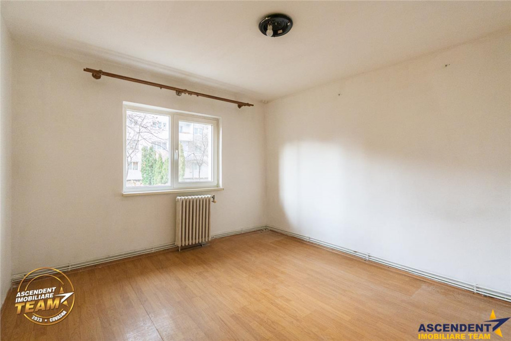 Comision cumparator: 0% ASCENDENT IMOBILIARE COVASNA Va propune spre vanzare un apartament cu 3 camere, situat in Sfantu Gheorghe, pe strada Crangului, intr-o zona apreciabila. Va invitam sa experimentati o vizionare initiala, din locatia unde va aflati, chiar acum, prin accesarea filmului de prezentare: Film prezentare: https://www.youtube.com/watch?v=9oUcM4fo5Ec Proprietatea se afla pe parter inalt, intr-un bloc bine intretinut, si beneficiaza de o compartimentare practica: living spatios, doua dormitoare luminoase, bucatarie, baie si wc de serviciu separat. Locatia este un punct forte ndash; aproape de magazine, piata, scoli, centru, dar in acelasi timp locatie apreciabila si ca si confort auditiv. Caracteristici principale: Suprafata utila: 65 mp 3 camere 2 bai Zona verde si linistita Acces facil catre punctele de interes ale orasului Invitam colegii la colaborare, garantand agentului sau agentiei partenere onorariul aferent! Consilier specializat pe aleasa oferta: domnul Zoltan Bajka Telefon/ WhatsApp: 0750.497.050 Detalii, fotografii suplimentare, precum si alte variante similare exclusive: www.ascendentimobiliare.ro