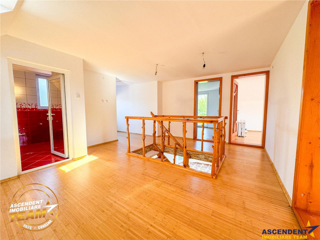 Comision cumparator:0% ASCENDENT IMOBILIARE COVASNA va propune o oportunitate rezidential-investitionala, in inima statiunii Covasna, valorizata printr -o casa noua, nelocuita, ce imbina confortul modern cu beneficiile naturale ale unei locatii terapeutice de exceptie. Va invitam sa experimentati o vizionare initiala, din locatia unde va aflati, chiar acum, prin accesarea filmului de prezentare: https://www.youtube.com/watch?v=40acXjmGdqg Proprietatea ofera o experienta de locuire completa: spatii generoase si luminoase, compartimentare practica, curte proprie, posibilitate de extindere si independenta energetica. Este recomandata pentru familie, retreat, business turistic sau rezidenta permanenta intr-un cadru verde si linistit. Constructia solida (cadre din beton armat si zidarie de caramida) garanteaza siguranta si durabilitate in timp. Dispunerea proprietatii: Demisol: garaj, spatiu de depozitare si camera tehnica ndash; perfect pentru organizare si accesibilitate. Parter: living spectaculos de 58 mp, bucatarie cu camara si baie ndash; zona de zi deschisa si functionala, cu acces facil la exterior. Mansarda: 3 dormitoare spatioase, baie mare si hol ndash; zona de odihna separata, linistita, cu lumina naturala si acces la balcon. Terase si balcoane: 2 terase (una acoperita), 2 balcoane ndash; ideale pentru relaxare si admirarea peisajului. Garaj exterior cu acces din strada. Dotari speciale: sistem fotovoltaic de 6.6 Kw, productie medie anuala 7.12 Mwh ndash; investitie in confort si eficienta pe termen lung. Pozitionata intr-o zona cu resurse naturale unice, Covasna este cunoscuta ca quot;Statiunea celor 1000 de izvoare de sanatatequot;, datorita apelor minerale terapeutice, aerului curat si climatului bland. O destinatie cu potential turistic tot mai apreciat, atat pentru vacante, cat si pentru relocare. Aceast edificiu este o alegere inspirata pentru cei care isi doresc liniste, siguranta si un stil de viata conectat cu natura ndash; fara a renunta la confortul modern. Vecinatea partiei de ski si a viitorului Spa completeaza oferta. Invitam colegii la colaborare: garantam agentului/ agentiei partenere onorariul aferent! Consilier dedicat alesei oferte: doamna Braghesiu Claudia Telefon/ Whatsapp 0745157361 Detalii, fotografii suplimentare si alte oferte similare exclusive: va invitam sa accesati site-ul ascendent.ro