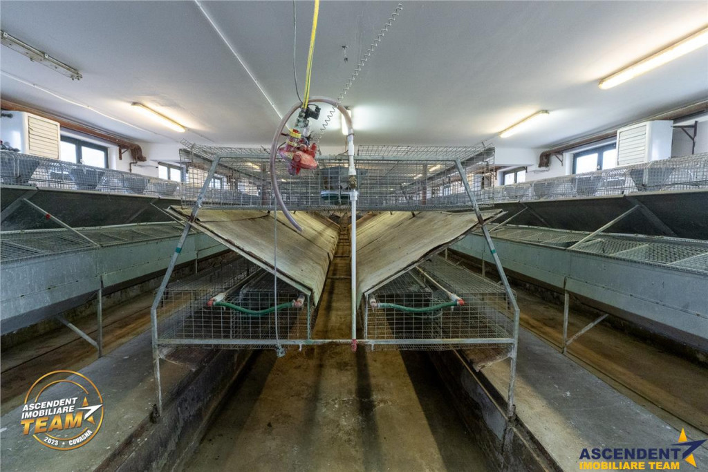 Comision cumparator: 0 % Ascendent Imobiliare Covasna este onorata sa va propuna spre vanzare o proprietate cu potential comercial/ investitional situata in localitatea Malnas. Ferma de iepuri este amplasata pe un domeniu de 3.500 mp, beneficiind de acces direct si vizibilitate excelenta din apropierea DN12, pe ruta strategic plasata intre Sfantu Gheorghe si Miercurea Ciuc.0 Pentru o prima impresie clara asupra proprietatii, va invitam sa accesati vizionarea video: Film prezentare: https://www.youtube.com/watch?v=s39oFSHPPKw Aceasta oportunitate este recomandata si pentru investitori sau dezvoltatori care vizeaza un teren si o cladire pretabila pentru activitati comerciale, logistice, industriale sau administrative. Pe teren se afla o cladire existenta, pe un singur nivel, cu o suprafata construita de 871 mp si o suprafata utila de 794 mp, ce poate fi utilizata ca spatiu de birouri, productie ori depozitare. Conform planului urbanistic local, terenul este oficial destinat cresterii si productiei animale, oferind astfel posibilitati multiple pentru continuarea sau transformarea activitatii. Unitatea a beneficiat de un program amplu de modernizare pentru a respecta standardele UE. Lucrarile au inclus renovari exterioare si interioare, precum si actualizarea tuturor instalatiilor, dupa cum urmeaza: Renovarea completa a instalatiilor destinate cresterii iepurilor Amenajarea vestiarelor separate (alb si negru) Construirea unui punct modern de taiere Amenajarea unui birou si a unei cabinete veterinare Modernizarea retelei electrice, a sistemului de apa si canalizare, precum si a sistemului de incalzire Imbunatatirea imprejmuirii si a perimetrului pentru o functionalitate superioara si o imagine profesionala. Facilitatea destinata cresterii iepurilor include: 76 module custi-mama, fiecare avand 16 custi separate 45 module de ingrasare, fiecare cu 24 custi separate 3 canale de colectare a dejectiilor punct de sacrificare punct de ambalare 1 camera de pre-racire, 5 mp, capacitate 0ndash;4deg;C 1 camera de congelare, 8 mp, capacitate ndash;25deg;C depozitare furaje (3 Euro-silozuri, capacitate 17 msup3; / 10 tone, echipate cu jgheaburi gravitationale si scari de acces) Aceasta oferta reprezinta si o ocazie de a achizitiona un activ imobiliar pregatit pentru operare imediata sau adaptabil in functie de strategia de afaceri a investitorului. Pozitionarea excelenta, infrastructura dezvoltata si versatilitatea ofertei transforma acest spatiu intr-o investitie cu randament ridicat si perspective solide pe termen lung. Pentru mai multe detalii si vizionare, nu ezitati sa ma contactati! Invitam colegii la colaborare: onoram agentul/ agentia partenera, cu onorariu aferent! Consultant dedicat alesei oferte: domnul Zoltan Bajka Telefon/ WhatsApp: 0750.497.050 Detalii, fotografii suplimentare, precum si alte variante similare exclusive: www.ascendentimobiliare.ro
