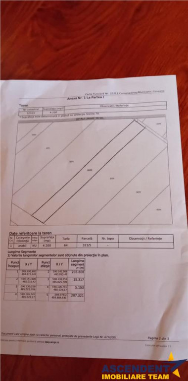 Comision cumparator: 0% ASCENDENT IMOBILIARE COVASNA este onorata sa va prezinte spre vanzare un teren extravilan generos, cu o suprafata de 4.200 mp, situat la periferia orasului Covasna, intr-o zona linistita si inconjurata de natura, cu acces facil din zona urbana. Va invitam sa experimentati o vizionare initiala, din locatia unde va aflati, chiar acum, prin accesarea filmului de prezentare: Film prezentare: https://www.youtube.com/watch?v=9jarbdBNFuA Recomandat pentru activitati agricole, investitii pe termen lung sau alte utilizari compatibile cu destinatia terenului. In apropierea imobilului se afla si un prelucrator de lemne. Ca utilitati exista curent electric in vecinatate. Acest lot se deschide in special pentru cei care cauta un spatiu vast pentru activitati agricole sau pentru dezvoltarea unor proiecte viitoare intr-o zona cu potential. Pentru mai multe detalii sau pentru programarea unei vizionari, nu ezitati sa ne contactati! Invitam colegii la colaborare: garantam agentului/ agentiei partenere onorariul aferent! Consilier dedicat alesei oferte: doamna Raduly Aranka Telefon/ Whatsapp 0771 533 047 Detalii, fotografii suplimentare si alte oferte similare exclusive: va invitam sa accesati site-ul ascendent.ro