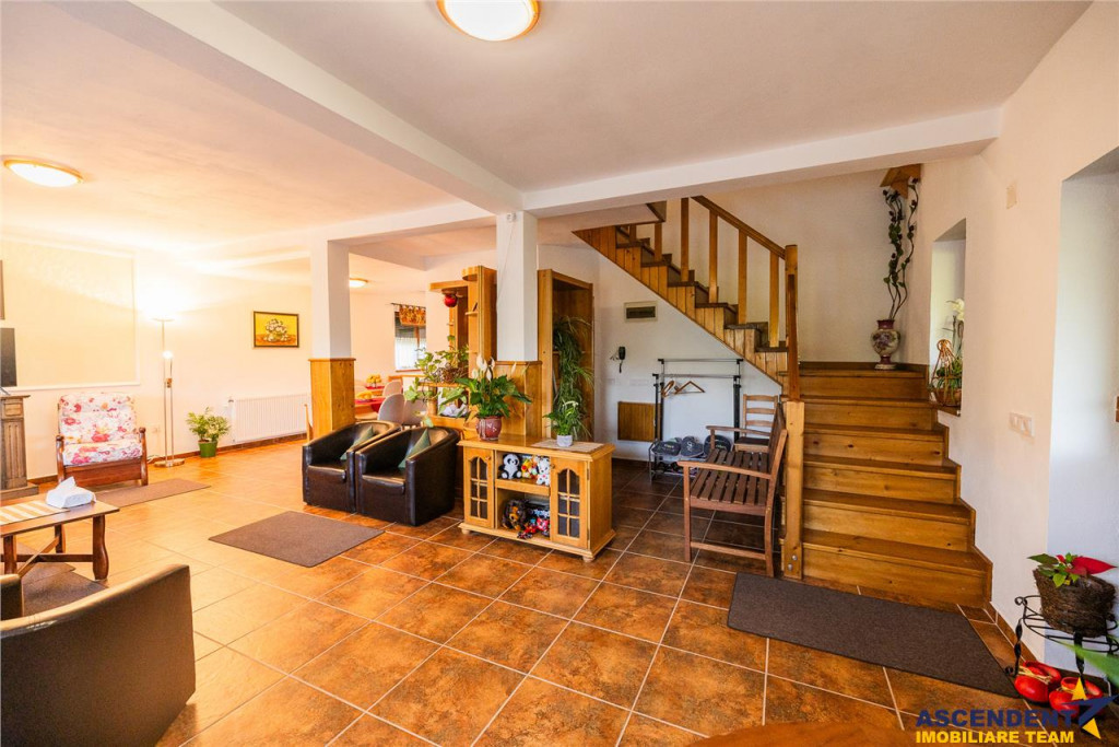 Comision cumparator: 0% ASCENDENT IMOBILIARE BRASOV, este onorata sa va prezinte spre vanzare linie imobiliara favorabila, domeniu de liniste si autenticitate in inima naturii, la doar 50 m de drumul principal, in pitoreasca localitate Tohanita - Zarnesti, Brasov. Va invitam sa experimentati o vizionare initiala, din locatia unde va aflati, chiar acum, prin accesarea filmului de prezentare: https://www.youtube.com/watch?v=nLqZNwGyhUc Aceasta proprietate rafinata imbina confortul unei locuinte permanente cu farmecul unei destinatii turistice montane. Cu o suprafata utila de 414 mp si un teren apreciabil de 1.742 mp, recomandat atat pentru cei care cauta atat un camin cald, cat si o investitie cu potential real de venit pasiv. Construita in 2013 si renovata integral in 2024, pensiunea se remarca prin stilul rustic autentic, detaliile din lemn masiv si atmosfera primitoare ce se simte din primul pas. Fiecare colt este gandit cu atentie pentru a oferi confort si intimitate, intr-un cadru natural spectaculos, inconjurat de paduri de brad si cu deschidere panoramica catre muntii Bucegi si Piatra Craiului. Proprietatea este compusa din doua corpuri comunicante, functionale si independente, permitand atat exploatare turistica, cat si locuire individuala sau intergenerationala. Corpul principal include un living generos, spatii luminoase pentru luat masa, o bucatarie complet utilata si camere mobilate cu gust, fiecare avand baie proprie si acces la lumina naturala. La mansarda, gasim camere cochete cu vedere catre padure si dressinguri spatioase, perfecte pentru oaspeti sau familie. Corpul secundar aduce un plus de autenticitate prin livingul rustic cu bucatarie incorporata, garaj, grup sanitar si camere separate pentru familie, prieteni sau turisti. Terasele generoase, foisorul si curtea ingrijita creeaza un cadru pretios pentru relaxare, evenimente intime sau seri linistite in mijlocul naturii. Beneficiaza de centrala Indesit pentru incalzire si apa calda, instalatii din cupru si izolatie eficienta cu polistiren de 10 cm si este racordata la utilitatile: apa, gaz, curent trifazic. Avantaje care o diferentiaza: retrasa, dar cu acces facil (doar 50 m de drumul principal) pozitionare excelenta intr-o zona turistica de top, aproape de Castelul Bran si de traseele montane din Tara Barsei vedere superba catre munti, liniste, aer curat si intimitate se vinde complet mobilata si utilata, gata de locuit sau inchiriat Recomandat pentru o familie care cauta un stil de viata echilibrat intre natura si confort, dar si pentru antreprenorii care doresc o pensiune functionala intr-o zona cu cerere turistica constanta. Disponibila imediat. Pret negociabil. Documentatie completa. Acest loc este menit sa fie vazut si in realitate. Consultanti dedicati ofertei, domnul Nicolae Pavel Telefon/ WhatsApp: 0720 500 650 si doamna Gilda Georgescu Telefon/ WhatsApp:0722 807 623 Detalii, fotografii suplimentare, precum si alte variante similare exclusive: www.ascendentimobiliare.ro