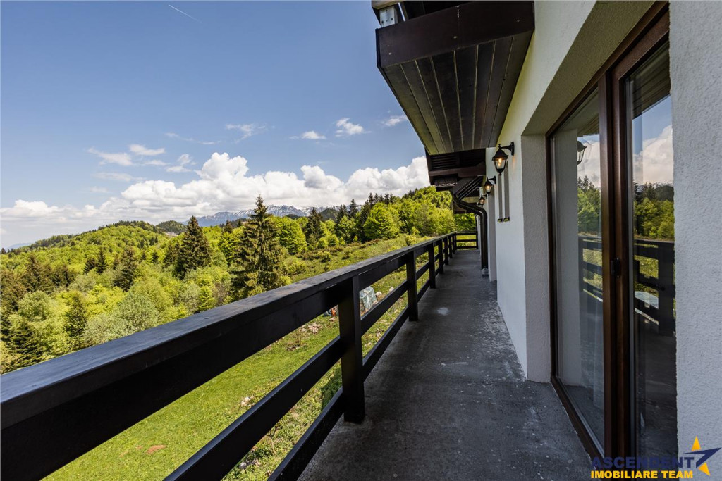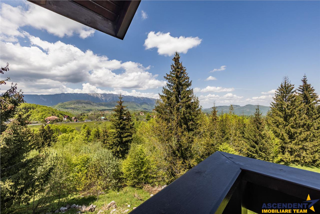 Situata la cota 1.200 m proprietatea ofera o priveliste de vis atat la muntii Bucegi cat si la muntii Piatra Craiului.