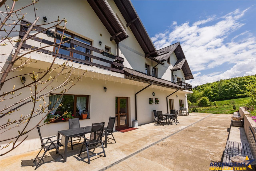 Va propune spre vanzare o pensiune la cele mai inalte standarde, mobilata si utilata, particularizata prin incantatoarea pozitionare in pitoreasca localitate renumita pentru peisajele sale impresionante si pentru aerul sau curat de munte, cunoscuta sub numele de Fundata, Brasov, Romania.