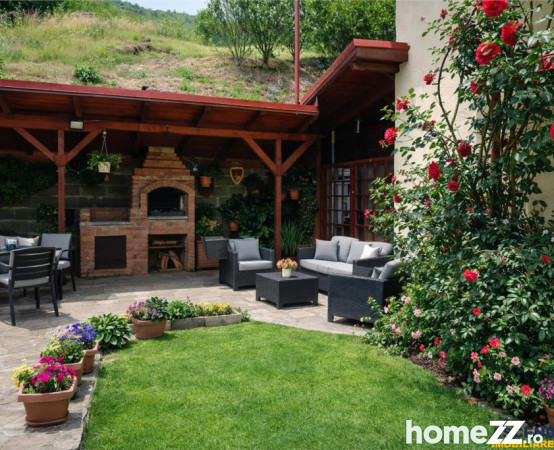 Vila dispune de doua foisoare minunate acoperite, loc de barbecue, dar si de zone de relaxare pentru copii, peisajul montan din jur, fiind o adevarata provocare pentru drumetii si explorari in natura.