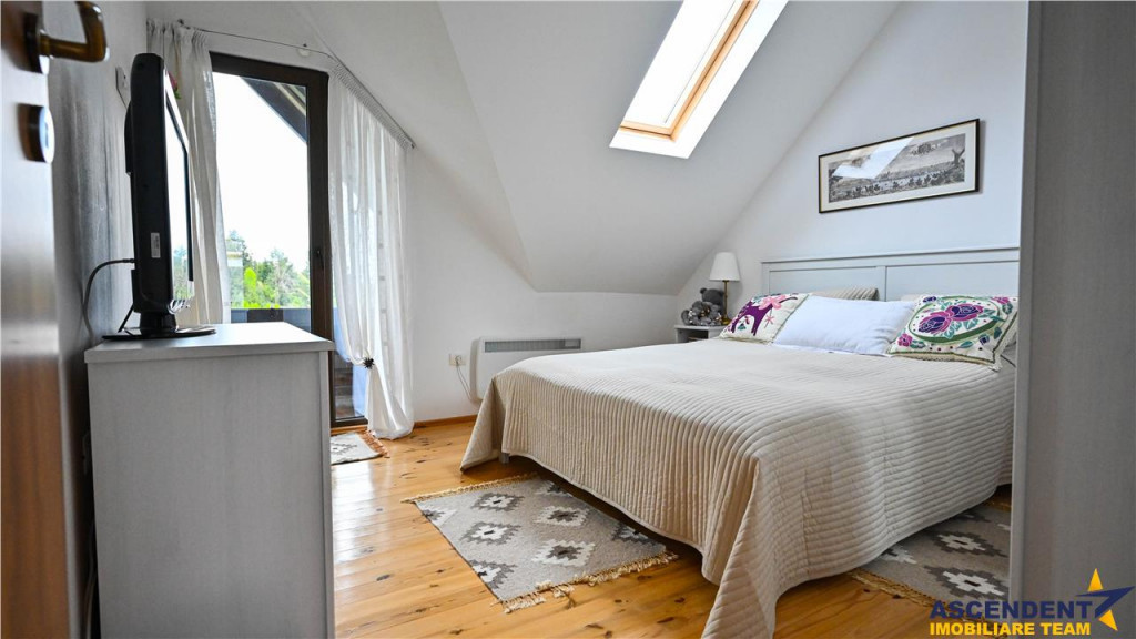 Comision cumparator: 2% tva din valoarea de tranzactionare. ASCENDENT IMOBILIARE Va propune spre vanzare o valoroasa casa de vacanta, mobilata, utilata si echipata, particularizata prin incantatoarea pozitionare in pitoreasca localitate renumita pentru peisajele sale impresionante si pentru aerul sau curat de munte, cunoscuta sub numele de Fundata, Brasov, Romania. Va invitam sa experimentati o vizionare initiala, din locatia unde va aflati, chiar acum, prin accesarea filmului de prezentare: https://www.youtube.com/watch?v=39oKbLbZsNk Peisajele montane din zona Bran-Moieciu-Fundata sunt cel putin impresionante, cu crestele muntilor care se ridica spre cer, paduri dese si verzi si paraie cristaline Situata la cota 1.200 m proprietatea ofera o priveliste de vis atat la muntii Bucegi cat si la muntii Piatra Craiului. Rezidenta beneficiaza de o deschidere de 17 ml si o amprenta la sol de 65 mp, fiind amplasata intr-un cadru natural spectaculos, la doar 100 metri de drumul asfaltat. Aceasta proprietate este construita pe tehnica profesionala pe fundatie solida de beton, din barne de lemn, cu o izolatie premium ndash; vata bazaltica la interior si polistiren de 10 cm la exterior ndash; pentru un confort termic exceptional in orice sezon. Exigenta pentru calitate si confort, a actualilor proprietari se regaseste in fiecare detaliu. Configuratia interioara este apreciabila pentru relaxare si functionalitate: parterul dispune de un living spatios open space cu bucataria, baie, terasa si pivnita, in timp ce etajul ofera trei dormitoare decomandate cu iesire pe balcon si doua bai. Imobilul este racordat la reteaua publica de apa, curent electric, fibra optica si dispune de boiler electric si fosa. Incalzirea este asigurata de un semineu cu ventilatie si convectoare electrice, creand o atmosfera calda si primitoare in fiecare colt al casei. Fundata, Brasov este locul perfect pentru cei care vor sa se reconecteze cu natura, intr-un peisaj montan de poveste. Descopera o oaza de liniste si rafinament, gata sa devina refugiul tau personal in inima muntilor. Consilier specializat pe aleasa oferta: domnul Florin Tonu Telefon/ WhatsAp: 0721 218 273 Detalii, fotografii suplimentare si alte variante exclusive : www.ascendentimobiliare.ro