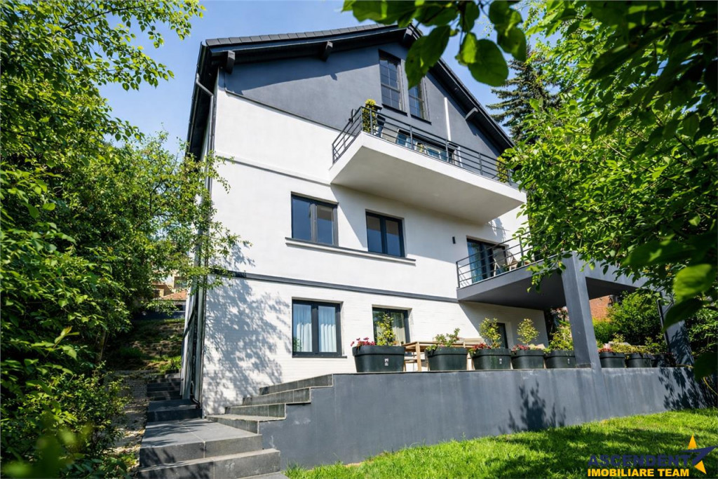 Comision cumparator 0%. ASCENDENT IMOBILIARE propune spre vanzare o proprietate deosebita, situata in centrul istoric al Brasovului, materializata printr-o vila selecta, o bijuterie arhitecturala, care imbina armonios clasicul cu modernul prin designul contemporan si amprenta nobiliara marcanta, evidentiata de spatii largi si luminoase, de incaperi generoase si de privelistea fantastica asupra orasului. Va invitam sa experimentati o vizionare initiala, din locatia unde va aflati, chiar acum, prin accesarea filmului de prezentare: https://www.youtube.com/watch?v=ftZqC3R_17k Imobilul este dispus pe D P E M, configurat pe doua apartamente a cate doua niveluri fiecare, in suprafata utila totala de 280 mp, respectiv a cate 140 mp utili per apartament. Aceasta compartimentare avantajeaza, oferind posibilitatea viitorului proprietar de a locui intr-unul din apartamente si pe celalalt sa-l inchirieze sau sa locuiasca impreuna cu parintii, copiii sau o familie numeroasa, indeplinind astfel si cele mai exigente cerinte. Deasemenea, prin implementarea unei scari interioare, aceasta vila poate deveni un tot unitar, facilitand ca cele patru niveluri sa comunice intre ele. Terenul de 538 mp, cu o curte superba, frumos amenajata, pozitia centrala si colinara, privelistea senzationala, linistea fantastica de care ne bucaram, abundenta de verde si apropierea de toate punctele de interes, fac din aceasta proprietate casa ideala. Inca de cand ii trecem pragul, observam calitatea finisajelor si a materialelor, interiorul ne confera o stare de bine, o energie pozitiva si pofta de viata care ne imbie la a petrece momente deosebite alaturi de cei dragi, savurate si pretuite in cel mai elegant mod posibil. O proprietate la care privesti si simti cum linistea si pacea interioara te cuprind treptat si unde fiecare coltisor are povestea lui. In diminetile de vara, in bucatarie, pe usa larg deschisa, spre terasa si curtea din spate, aerul rece si curat al diminetii intra din abundenta, amestecandu-se cu aroma intensa de cafea. Dormitoarele generoase se prezinta ca un loc intim si placut, menit sa creioneze atmosfera linistita si relaxanta de care avem nevoie dupa o zi aglomerata. Aceasta este o casa in care fiecare incapere este grandioasa, completa, complexa si contribuie cu un sentiment placut de ,,purtat in eleganta,, inclusiv baile care rasfata prin dimensiuni, nuante, design si mobilier. La intrare, o pereche de papucei eleganti, abia asteapta sa sariti in ei pentru a face un tur al casei si sa va strecurati in camera preferata, unde poate ati vrea sa cititi o carte, sa ascultati o muzica in surdina, sa meditati sau poate chiar sa scrieti o scrisoare de multumire....voua insiva pentru achizitia facuta. O proprietate in care veti adora sa serviti o limonada rece in zilele calduroase sau un ceai fierbinte in serile lungi de iarna, sa organizati un dineu cu prietenii sau sa desfaceti cu emotie cadourile de Craciun, o serata in curte sau un lampion lansat de pe terasa ... o proprietate pe care o puteti numi cu drag, ACASA. Consultant dedicat ofertei, GEORGE MOSOR Telefon/whatsapp 0732.847.048
