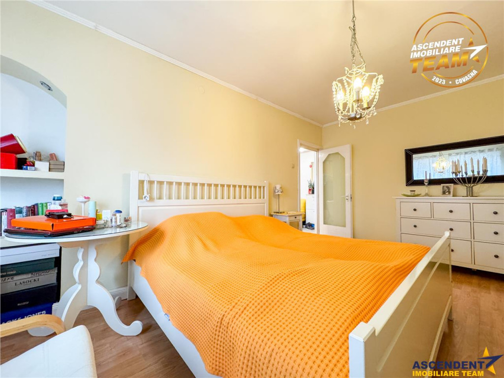 Comision cumparator: 0% ASCENDENT IMOBILIARE COVASNA, Va propunem spre vanzare un apartament spatios cu 2 camere, situat la etajul 4 al unui bloc din caramida, cu acoperis, construit in 1992, pe strada Nicolae Iorga. Pentru confortul dumneavoastra va invitam sa faceti o prima vizionare, din locatia unde va aflati, chiar acum, prin accesarea filmului de prezentare pe care vi l-am pregatit, cu drag: Film de prezentare : https://www.youtube.com/watch?v=5HI_jkgguaQ Tur virtual: https://my.matterport.com/show/?m=8imrwb1PdYL Locuinta dispune de o suprafata utila de 52.82 mp si o dispozitie decomandata. Balconul de la bucatarie a fost integrat acesteia creeand un plus de spatiu util. Prin pozitionarea optima, ofera acces rapid la scoli, licee, piata argo-alimentara, supermarket, institutii si parcuri, intr-un cuvant la toate facilitatile necesare vietii de zi cu zi. Proprietatea este recomandata pentru cei care cauta un camin intr-o zona foarte cautata, linistita si usor accesibila sau, pentru investitii imobiliare. Invitam colegii la colaborare: garantam agentului/ agentiei partenere onorariul aferent! Consilier dedicat alesei oferte: D-na Alina Floroian Telefon/ Whatsapp: 0760566472 Detalii, fotografii suplimentare si alte oferte similare exclusive: va invitam sa accesati site-ul https://www.ascendent.ro/