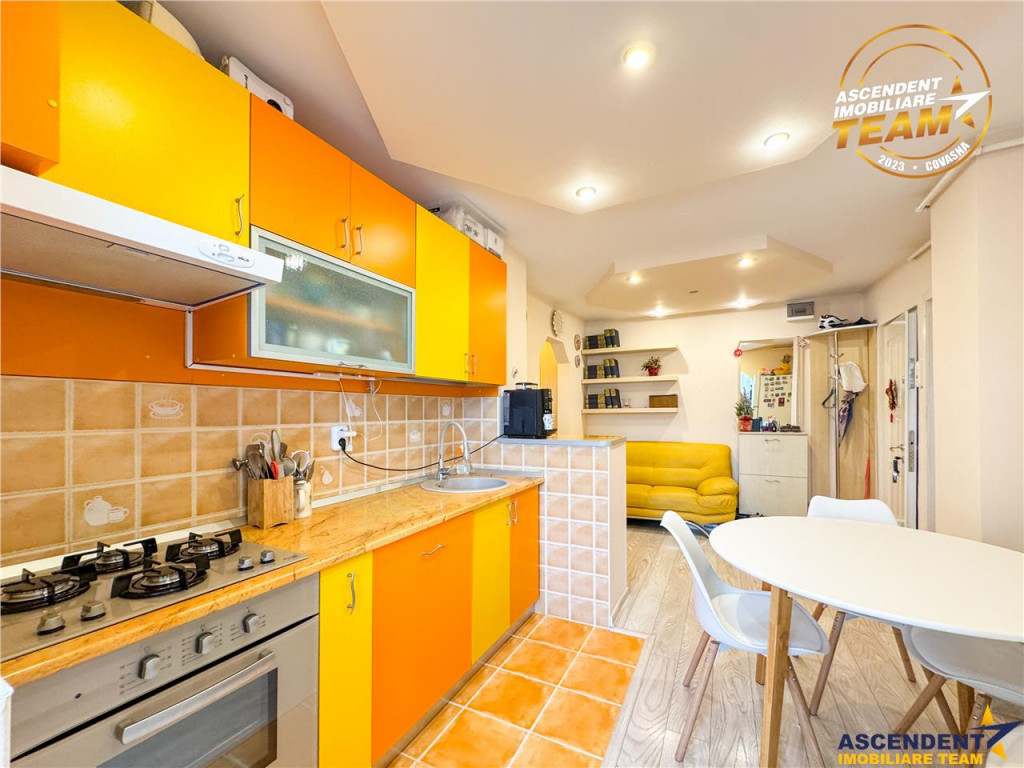 Comision cumparator: 0% ASCENDENT IMOBILIARE COVASNA, Va propunem spre vanzare un apartament spatios cu 2 camere, situat la etajul 4 al unui bloc din caramida, cu acoperis, construit in 1992, pe strada Nicolae Iorga. Pentru confortul dumneavoastra va invitam sa faceti o prima vizionare, din locatia unde va aflati, chiar acum, prin accesarea filmului de prezentare pe care vi l-am pregatit, cu drag: Film de prezentare : https://www.youtube.com/watch?v=5HI_jkgguaQ Tur virtual: https://my.matterport.com/show/?m=8imrwb1PdYL Locuinta dispune de o suprafata utila de 52.82 mp si o dispozitie decomandata. Balconul de la bucatarie a fost integrat acesteia creeand un plus de spatiu util. Prin pozitionarea optima, ofera acces rapid la scoli, licee, piata argo-alimentara, supermarket, institutii si parcuri, intr-un cuvant la toate facilitatile necesare vietii de zi cu zi. Proprietatea este recomandata pentru cei care cauta un camin intr-o zona foarte cautata, linistita si usor accesibila sau, pentru investitii imobiliare. Invitam colegii la colaborare: garantam agentului/ agentiei partenere onorariul aferent! Consilier dedicat alesei oferte: D-na Alina Floroian Telefon/ Whatsapp: 0760566472 Detalii, fotografii suplimentare si alte oferte similare exclusive: va invitam sa accesati site-ul https://www.ascendent.ro/
