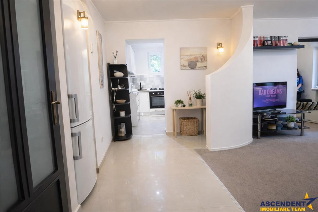 Comision cumparator: 0% ASCENDENT IMOBILIARE este onorata sa va prezinte spre vanzare un apartament luminos, renovat, situat intr-o zona apreciata pentru linistea acordata, pe Strada Narciselor, in cartierul Budai din Targu Mures, cu intimitate, aer curat si acces facil la natura. Va invitam sa experimentati o vizionare initiala, din locatia unde va aflati, chiar acum, prin accesarea turului virtual si a filmului de prezentare: Tur virtual tridimensional: https://my.matterport.com/show/?m=unSpMNkWEHR Film prezentare: https://www.youtube.com/watch?v=GKdLSTPtY9c Locuinta se afla la ultimul nivel al unui bloc cu structura terasata, reabilitat termic, beneficiind astfel de eficienta energetica sporita si costuri reduse de intretinere. Rezidenta are o compartimentare circulara, moderna si functionala, care conecteaza in mod fluent zona de living open space cu balconul incorporat, bucataria, cele doua dormitoare, baia si spatiile auxiliare. Confortul interior este completat de o atmosfera primitoare, iar orientarea si pozitionarea ofera liniste deplina si o priveliste aerisita, fara vecini deasupra. Imobilul este situat intr-o zona cu vegetatie abundenta, aproape de unul dintre multiplele parcuri ale cartierului. In proximitate se gasesc magazine, farmacii, cabinete medicale, saloane si statii de transport in comun, toate contribuind la un stil de viata comod si echilibrat. Proprietatea dispune de carte funciara fara sarcini si se vinde mobilata si echipata, gata pentru mutare sau investitie. Detalii, fotografii suplimentare si alte oferte similare exclusive: www.ascendentimobiliare.ro