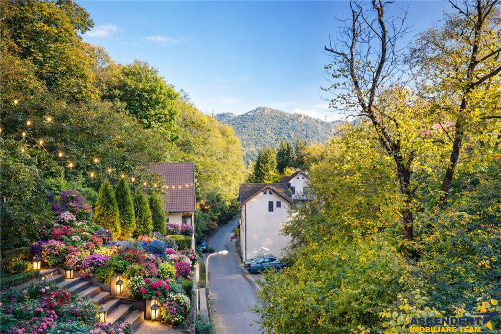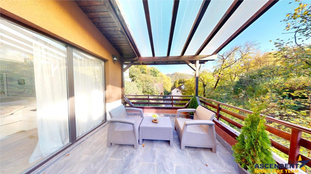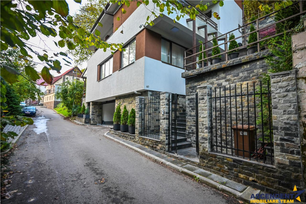 Comision cumparator:2% tva ASCENDENT IMOBILIARE va propune spre vanzare o locuinta exceptionala, edificata in 2016, aproape de centrul orasului, in arealul Drumul Poienii - Centru Istoric Medieval Brasov, pozitionata intr-o zona cu un view deosebit, liniste si aer curat. Va invitam sa experimentati o vizionare initiala, din locatia unde va aflati, chiar acum, prin accesarea turului virtual/ si a filmului de prezentare: Tur virtual tridimensional: https://my.matterport.com/show/?m=m2s5aB9kmiH Film prezentare: https://www.youtube.com/watch?v=B-AgJcJ8kPo Proprietatea este realizata pe o structura de beton armat cu zidarie din caramida Porotherm. Terenul constructiei este amenajat cu terase in trepte, delimitate de ziduri si jardiniere din beton armat, placate cu piatra naturala. Imobilul este realizat pe Demisol, Parter, Etaj 1 si Mansarda. Demisol: garaj dublu (pardoseala cu rasina epoxidica cuartoasa), camera tehnica cu spalatorie/uscatorie, centrala termica cu gaz si centrala termica electrica cu buffer , pivnita si casa scarii. Parter: living, dining , bucatarie terasa acoperita, camara, grup sanitar, debara, vestibul, hol casa scarii si terasa neacoperita spre living. Etaj 1: dormitor matrimonial cu dressing si grup sanitar principal balcon (cu vedere spre Tampa), doua dormitoare doua logii (orientate spre Sud) grup sanitar secundar, hol si casa scarii. Mansarda: dormitor pentru oaspeti cu o terasa mare acoperita (cu orientare panoramica spre Tampa) si un birou luminos cu iesire pe aceeasi terasa superba. La nivelul superior al pretiosului domeniu este amenajata inca o terasa pentru barbeque sau intalniri cu prietenii. In partea din spate a locuintei este amenajat un spatiu de depozitare destinat lemnelor si accesoriilor pentru gospodarie, spatiu ce poate fi oricand transformat in bucatarie de vara prin extinderea utilitatilor disponibile in proximitate. Constructia a fost finalizata in anul 2020. Toate aceste unitati au o amprenta construita la sol de 126mp, suprafata desfasurata fiind de 364mp. Recent edificata, cu dragoste si pasiune, pe o structura mixta alcatuita din cadre si diafragme de beton armat zidarie portanta, anveloparea cladirii cu apreciabila eficienta termica. Din valoroasele dotari, mai amintim: senzori de fum, acces proprietate automatizat, usa garaj automatizata, videointerfon, incalzire prin pardoseala. aer conditionat. Competentele tehnice, creativitatea, abilitatile de design si gandirea analitica ale actualilor proprietari se regasesc in fiecare detaliu al acestei case unice. Noii locatori vor avea privilegiul de a se bucura de aceste trasaturi remarcabile ale noului lor camin. Resedinta cu terenul de 451mp este complet imprejmuita si este dotata cu sistem de supraveghere video si de alertare. Cladirea va fi vanduta mobilata si utilata. Desigur ca unicitatea si specialele particularitati ale exclusivistei oferte invita la cunoasterea detaliata! Invitam colegii la colaborare! Consilier specializat pe aleasa oferta domnul Constantin Vieriu Telefon/ WhatsAp: 0722.624.161 Detalii, fotografii suplimentare si alte variante similare exclusive: www.ascendentimobiliare.ro
