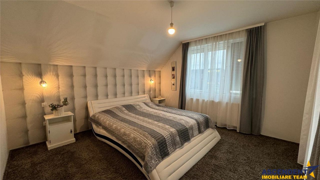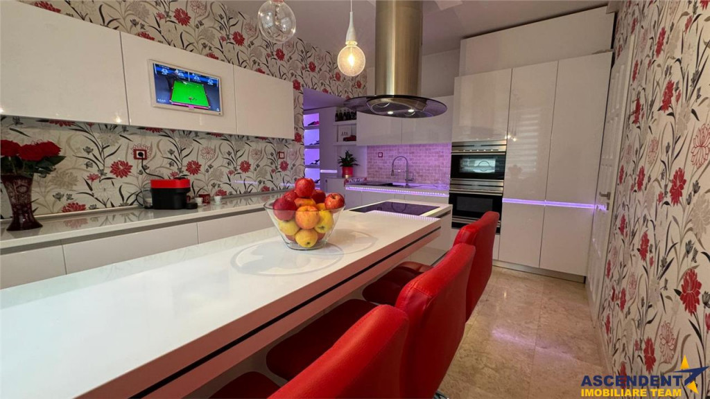 Comision cumparator: 0% ASCENDENT IMOBILIARE este onorata sa va invite sa descoperiti sa descoperiti o proprietate eleganta, mobilata, accesorizata, dotata cu finisaje de inalta calitate si echipamente premium, un cadru pentru un stil de viata rafinat, confortabil si echilibrat, ariata intr o apreciata zonare, cu acces facil, in Santana de Mures. Va invitam sa experimentati o vizionare initiala, din locatia unde va aflati, chiar acum, prin accesarea turului virtual si a filmului de prezentare: Tur virtual tridimensional: https://my.matterport.com/show/?m=Ra2mZTaFJTA Film prezentare: https://www.youtube.com/watch?v=k9bFGlO4hc0 Compozitie ergonomica: Livingul radiant este amenajat cu parchet din stejar masiv, canapea confortabila, doua fotolii si o masa de dining din acelasi lemn nobil. Atmosfera este completata de un televizor Samsung Curved cu camera integrata, ce aduce un plus de tehnologie si rafinament. Bucataria inchisa impresioneaza prin dotari premium marca Teka, din care amintim: cuptor clasic, cuptor cu microunde, cuptor cu abur, sertar pentru mentinerea mancarii calde, frigider si congelator de capacitate mare, dar si un TV Samsung incorporat. Designul este completat de finisaje elegante din travertin si piatra naturala, iar fereastra cu aerisitor bine amplasat asigura confort termic si ventilatie optima. Cele doua bai modernizate sunt echipate cu obiecte sanitare de top marca Villeroy amp; Boch, iar baia de la etaj include o cada pe colt, ideala pentru relaxare si rasfat. Zona de spalatorie este eficient organizata, dotata cu masina de spalat Whirlpool si spatiu pentru depozitare inteligenta. Scara interioara din beton, placata cu stejar masiv, imbina perfect durabilitatea cu eleganta, oferind o tranzitie armonioasa intre niveluri. La etaj se afla trei dormitoare personalizate, doua dintre ele cu acces la apreciata terasa. Exteriorul completeaza experienta: o terasa generoasa, mobilata si rezistenta la temperaturi extreme, pentru momente de relaxare sau petreceri cu familia si prietenii. Rezidenta este accesorizata si cu doua balcoane prevazute cu plase pentru insecte, iar spatiile auxiliare includ un pod incapator cu inaltime confortabila, o pivnita si alte zone de depozitare bine gandite. Detalii, fotografii suplimentare si alte oferte similare exclusive: www.ascendentimobiliare.ro