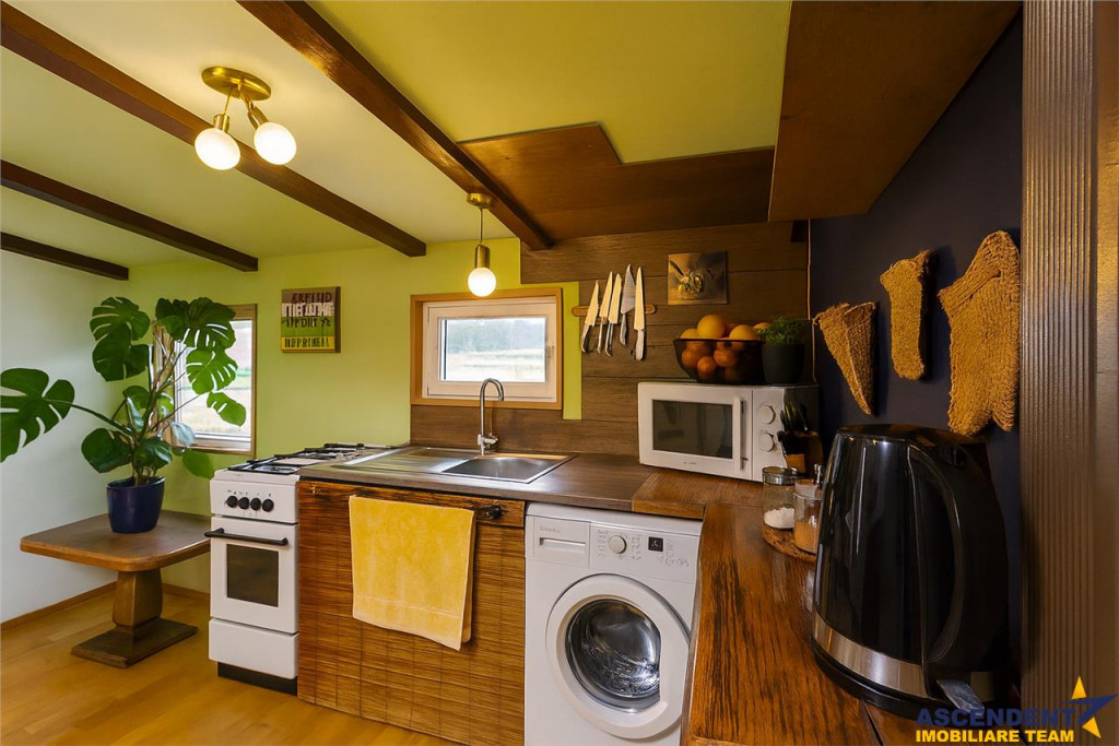 Comision cumparator: 0% ASCENDENT IMOBILIARE este onorata sa va propuna spre vanzare o cabana care transmite stare de liniste si autenticitate. Un loc in care materialele naturale, lumina si detaliile atent gandite creeaza o atmosfera calda, primitoare si profund personala. Va invitam sa experimentati o vizionare initiala, din locatia unde va aflati, chiar acum, prin accesarea turului virtual tridimensional: https://my.matterport.com/show/?m=N5oac2jbHYM Film prezentare: https://www.youtube.com/watch?v=umsn3FL8i9c Interiorul imbina functionalitatea cu caracterul. Zona de zi este gandita ca un spatiu de retragere si relaxare, cu accente rustice, texturi calde si un semineu care devine centrul emotional al casei. Este locul perfect pentru seri tihnite, lectura, conversatii sau pur si simplu pentru a incetini ritmul. Bucataria are un aer autentic si creativ, cu personalitate, oferind un spatiu practic, dar si placut vizual, potrivit pentru cei care apreciaza gatitul ca experienta, nu ca rutina. Dormitorul pastreaza aceeasi nota de liniste si naturalete, fiind gandit ca un spatiu de odihna reala. Baia completeaza ansamblul printr-un stil indraznet si modern, cu finisaje care ies din tipar, pastrand in acelasi timp functionalitatea deplina. Fiecare spatiu asteapta sa descri povestea. Cabana beneficiaza de 700mp teren, cu zone verzi si spatiu suficient pentru relaxare, gradinarit sau extinderi viitoare. Este locul ideal pentru cei care isi doresc independenta, aer curat si un cadru natural, fara a renunta la confort. Sistemul de irigare si sera de cca 40mp, completeaza oferta. Aceasta proprietate se adreseaza unui cumparator care cauta autenticitate, caracter si stare, fie ca este vorba de locuire permanenta, casa de vacanta sau un refugiu personal. Sistemul de irigare si sera de cca 40mp, completeaza oferta. Consilieri dedicati alesei oferte: doamna Ana Maria Bucur Telefon WhatsApp: 0766 898 398 si domnul Andrei Rusu Telefon WhatsApp: 0774 522 546 Detalii, fotografii suplimentare si alte variante exclusive : www.ascendentimobiliare.ro ID intern: 059937.