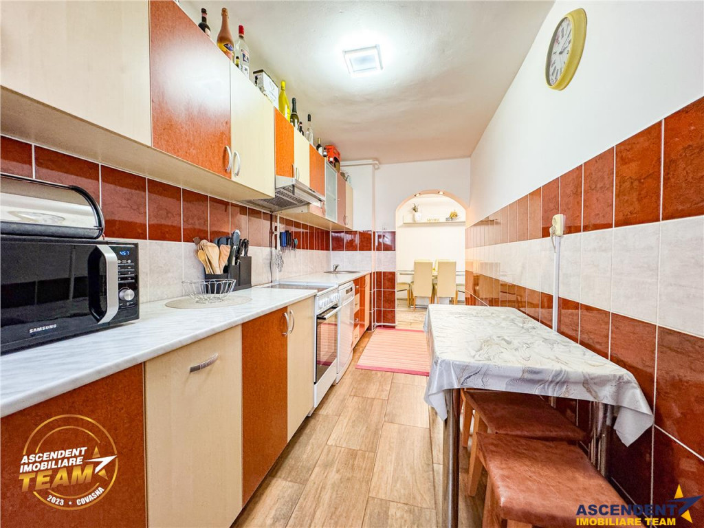 Comision cumparator: 0% ASCENDENT IMOBILIARE COVASNA, Va propune spre vanzare un apartament spatios cu 3 camere, 73 mp utila, situat la etajul 9 din 10, zona Garii, Sfantu Gheorghe. Pentru confortul dumneavoastra va invitam sa faceti o prima vizionare, din locatia unde va aflati, chiar acum, prin accesarea turului virtual si al filmului, pe care vi le- am pregatit, cu drag: Tur virtual: https://my.matterport.com/show/?m=5GMa3XYxAXW Film prezentare: https://www.youtube.com/watch?v=IClqAd-hlp8 Locuinta este recent renovat si dispune de centrala termica in condensare, montata in urma cu un an, ceea ce asigura un confort termic ridicat si eficienta energetica. Se vinde partial mobilat ndash; raman incluse: mobila de bucatarie, mobilierul din camera mica, precum si un dulap generos in dormitor. Imobilul se afla intr-o zona excelenta ndash; aproape de Gara, cu acces rapid la toate facilitatile urbane: scoli, gradinite, mall, gara CFR, autogara, magazine si mijloace de transport in comun. Privelistea este deosebita, beneficiind de o panorama frumoasa asupra orasului. Invit colegii la colaborare: garantam agentului/ agentiei partenere, onorariu aferent! Consilier specializat pe aleasa oferta: doamna Raduly Aranka Telefon/Whatsap - 0771533047 Detalii, fotografii suplimentare si alte variante exclusive: https://www.ascendent.ro