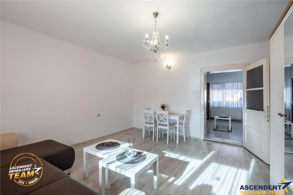 Comision cumparator: 0% ASCENDENT IMOBILIARE COVASNA Casa de vanzare Simeria ndash; Sfantu Gheorghe Situata intr-o zona rezidentiala linistita de case, in cartierul Simeria, aceasta proprietate ofera un cadru practic si echilibrat pentru locuire. Va invitam sa experimentati o vizionare initiala, din locatia unde va aflati, chiar acum, prin accesarea filmului de prezentare: Film prezentare:https://www.youtube.com/watch?v=ip82AURofKs Matterport:https://my.matterport.com/show/?m=ELRS6VY7GkZ Casa este independenta, construita la parter, cu o compartimentare functionala si interior luminos, bine intretinut si pregatit pentru utilizare imediata. Zona de zi este aerisita, cu finisaje unitare si spatii bine proportionate, potrivite atat pentru locuire proprie, cat si pentru investitie.Terenul aferent este de 86 mp proprietate exclusiva, la care se adauga cota parte de 1/3 dintr-un teren comun de 313 mp, asigurand acces si folosinta a curtii comune, cu un nivel redus de intretinere. Accesul se face de pe strada asfaltata, intr-o zona cu vecinatati ingrijite si infrastructura completa. O proprietate practica, intr-o zona stabila si apreciata, ideala pentru cei care isi doresc avantajele unei case, cu intretinere minima. Consilier dedicat alesei oferte: domnul Lorincz Lehel Telefon/WhatssApp: 0723 369 607 Detalii, fotografii suplimentare, precum si alte variante similare exclusive: www.ascendentimobiliare.ro