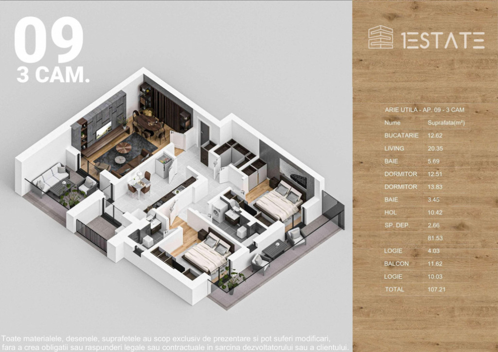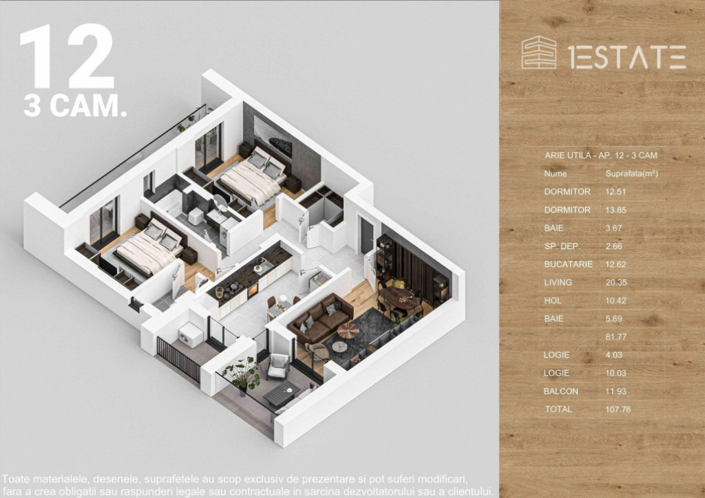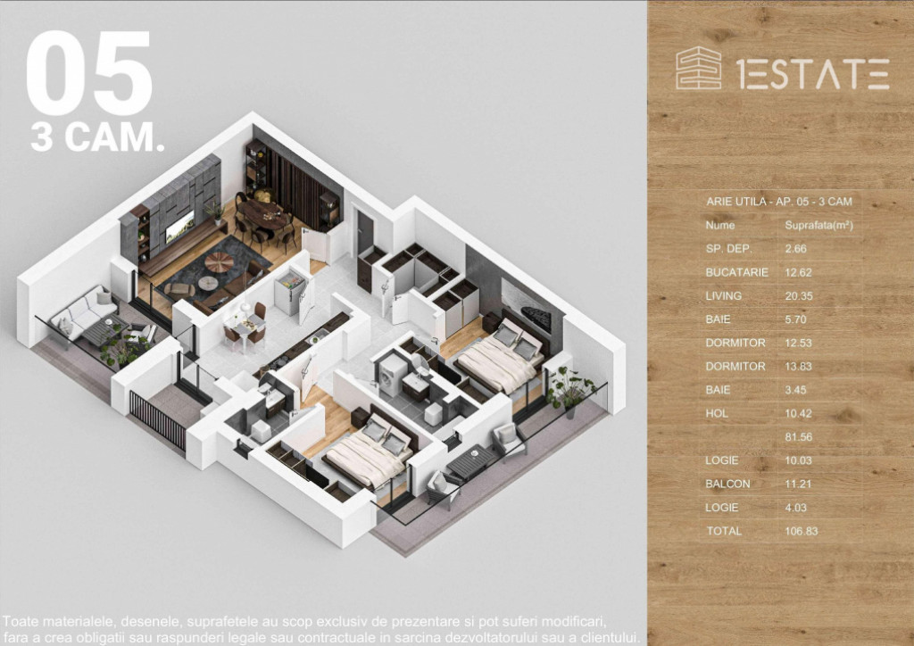 COMISION 0% (zero) *Pentru aceasta proprietate nu se percepe comision din partea cumparatorului. GATA PENTRU MUTARE! Apartament 3 camere, avand urmatoarele caracteristici: - suprafata totala de 107.76 mp - suprafata utila de 81.77 mp - terasa de 25.99 mp * Va rugam sa ne contactati pentru a afla disponibilitatea unitatilor locative de acest tip! * Oricare dintre cele 6 tipuri de unitati locative prezentate in oferta, are acelasi pret mentionat in acest anunt. Preturi loc parcare: Subteran: 15.000 euro (TVA inclus) Teran: 8.000 euro (TVA inclus) Proiect inovator format din 10 imobile cu regim de inaltime S+P+2E+3R, fiecare cu 16 apartamente spatioase de 2, 3 si 4 camere, proiectate pentru a oferi confort maxim, eficienta energetica si un design modern inspirat din stilul mediteranean. Situat in cartierul Titan, zona Pallady, ansamblul beneficiaza de o pozitionare excelenta: * Aproape de statii de metrou Nicolae Teclu si mijloace de transport in comun; * La cateva minute de centre comerciale, parcuri, scoli si gradinite; * Acces rapid catre marile artere ale orasului. Locuinte inteligente si eficiente - Panouri fotovoltaice individuale pentru fiecare apartament – locuintele devin autonome energetic si pot genera suficienta energie electrica pentru consumul propriu, mai ales in sezonul cald. In sezonul rece, costurile se reduc semnificativ, platindu-se doar transportul energiei (aprox. 40% din costul unui kWh). - Statut de prosumator – proprietarii pot livra surplusul de energie in retea si beneficiaza astfel de compensari financiare. - Pompe de caldura Samsung pentru fiecare unitate locativa – sistem de incalzire si racire eficient, alimentat din energia solara. - Ventilatie cu recuperare de caldura (NovingAIR) – sistem inteligent de aerisire, care mentine calitatea aerului fara pierderi de energie, reducand semnificativ costurile de incalzire/racire. Proiectul a fost conceput pentru a respecta cele mai noi standarde europene privind cladirile cu consum aproape zero de energie (nZEB), printr-o combinatie de solutii tehnice performante: - Izolatie exterioara din vata bazaltica de 15 cm – eficienta termica si protectie fonica superioara. - Tamplarie termoizolanta Deceuninck – eficienta energetica crescuta si confort termic constant. - Incalzire in pardoseala – solutie moderna care reduce consumul de energie si creste confortul interior. Fiecare apartament dispune de terasa generoasa, dotata cu balustrade glisante din sticla securizata, ce permit inchiderea partiala sau totala. Astfel, terasa poate deveni o incapere suplimentara pe timpul iernii sau in zilele ploioase, oferind un spatiu versatil de relaxare. Pentru proprietarii de vehicule electrice, ansamblul prevede statii de incarcare individuale, amplasate la intrarea fiecarui bloc. Acestea pot fi conectate direct la sistemul de panouri solare al apartamentului, oferind o solutie de incarcare rapida, sigura si fara costuri suplimentare. De ce sa alegi acest proiect Locuinte moderne, eficiente energetic; Costuri lunare minime pentru intretinere; Independenta energetica cu ajutorul panourilor solare; Design unic in stil mediteranean; Locatie ideala pentru familii active. Id intern: P172944