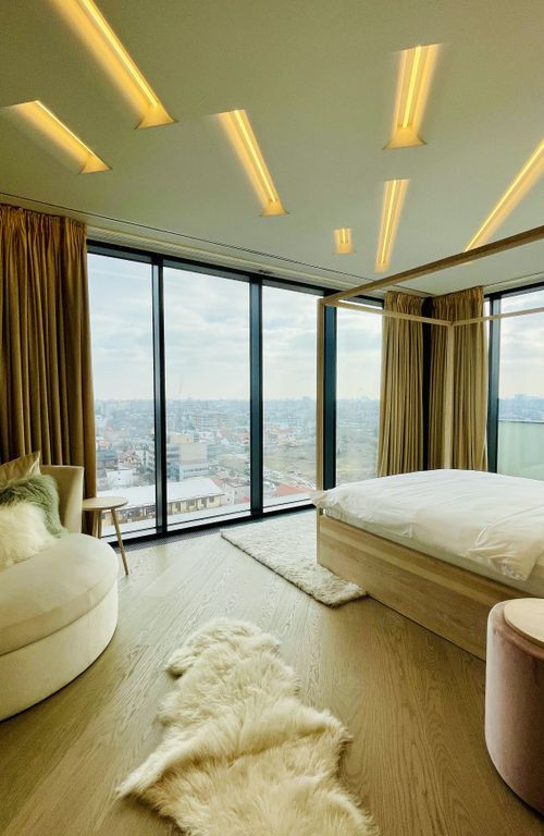 Upsidetown va prezinta spre inchiriere un apartament penthouse, duplex Aflat la ultimele etaje ale unui exclusivist proiect din zona Floreasca-Barbu Vacarescu, una din cele mai verzi zone ale orașului, acest apartament tip penthouse se afla la etajul 10-11 al unui imobil cu vedere spectaculoasa asupra orasului. Realizat cu atentie la cele mai mici detalii, acest apartament exclusivist este decorat cu mobilier de stejar, marmura, materiale de înaltă calitate şi culori blânde ce pun in valoare inaltimea spectaculoasa a camerelor. Bucătăria generoasa este si complet utilata. Living spatios, gratar pe terasa. Cele 3 dormitoare ale apartamentului dispun de cate o baie, toate fiind complet accesorizate cu prosoape, uscătoare de păr şi articole de toaletă. Apartamentul dispune de 2 terase generoase, una de 75 mp si una de 145 mp aflata la ultimul etaj. 2 locuri de parcare subteran 300 euro + tva ambele Garantia este de 3 luni ( nu se adauga tva ) La pretul afisat se adauga tva. Servicii premium.