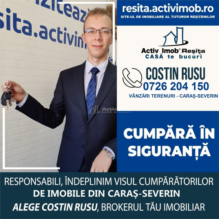 BENEFICII PENTRU CLIENTII ACESTEI OFERTE: - Terenul NU este in chirie de la Primarie, este dobandit in regim privat si figureaza in CF persoana fizica, fara datorii; - Agentia Imobiliara Activ Imob Resita va pune la dispozitie teren pentru INVESTITIE intre Forotic si Comoraste, la 3 km. de DN 57 si la 24 km. de Bocsa si DN 58B, cu cale de acces de pe drum asfaltat direct pana pe teren; - Terenul are o suprafata totala de 132.000 mp. (din care 128.100 mp. comasati), avand deschidere la calea de acces de circa 400 metri, disponibil pentru vanzare la pretul de 0,65 euro/mp. (6.500 euro/hectar), pretul fiind usor negociabil; - Terenul se afla pe raza comunei Forotic, paralel cu Drumul Judetean 572 si linie de curent, este compus din 9 parcele si este ideal pentru investitie in sisteme fotovoltaice sau pentru activitati agricole sau de agrement, categoriile de folosinta fiind de 66.700 mp teren arabil, 33.300 mp. faneata, 26.300 mp. pasune si 5.700 mp. padure; - Exista cale de acces pe drum asfaltat pana in incinta terenului si linie de curent de medie tensiune ce trece pe marginea terenului. Nu se afla in zona cu risc de inundatie sau alunecari de teren. Daca si dumneavoastra aveti o proprietate in Judetul Caras-Severin si doriti sa o vindeti sau sa o inchiriati, va rugam sa sunati la numerele de telefon 0726 204 150 - Costin Rusu sau 0784 726 875 - Petre Culcea si vom crea un profil personalizat pentru vanzarea sau inchirierea acesteia, vizibil pe site-ul oficial de imobiliare: resita.activimob.ro Va multumim! Situatia juridica: Aceste proprietati detin informatii reale, fiind verificate si evaluate in prealabil de Compartimentul Suport Back-Office. Detin contract de vanzare-cumparare, cadastru, intabulare si sunt libere de sarcini. RECOMANDARE: PENTRU A VIZUALIZA TOATE OFERTELE SI A PRIMI NOTIFICARI CU NOILE OFERTE, VA RUGAM SA SOLICITATI CERERE DE PRIETENIE PE FACEBOOK, Petre Culcea ActivImob Resita SAU ACCESATI SITE-UL OFICIAL DE IMOBILIARE: resita.activimob.ro MULTUMIM! Compania ACTIV IMOB ROMANIA detine dreptul exclusiv de mediatizare a acestei proprietati, astfel intermedierea pentru vanzare-cumparare se va realiza doar prin si cu sprijinul acesteia, cumparatorul avand garantia ca tranzactia se va finaliza in siguranta si legal. Va multumim si va felicitam ca ati ales SIGURANTA TRANZACTIEI! Posibilitate cumparare prin credit ipotecar in 3 saptamani sau cash in 3 zile, documentatie executata de compartimentul Suport Back-Office din cadrul biroului. ID ACTIV IMOB: 226710