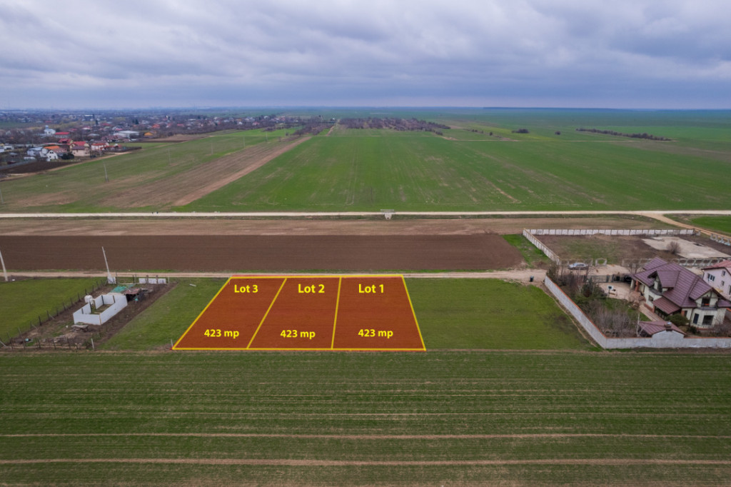 Zona linistita, trafic redus, acces facil catre Autostrada A0 si Centura Bucuresti. Lot bine dimensionat, forma dreptunghiulara, ideal pentru constructia unei case individuale de familie. Case nou construite, zona in progresie, vecinatate civilizata, investitie sigura pe termen lung. 3 loturi disponibile! Id intern: RL20650