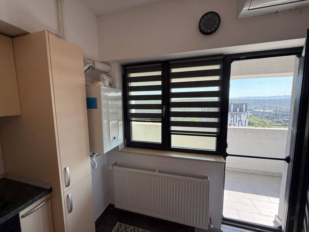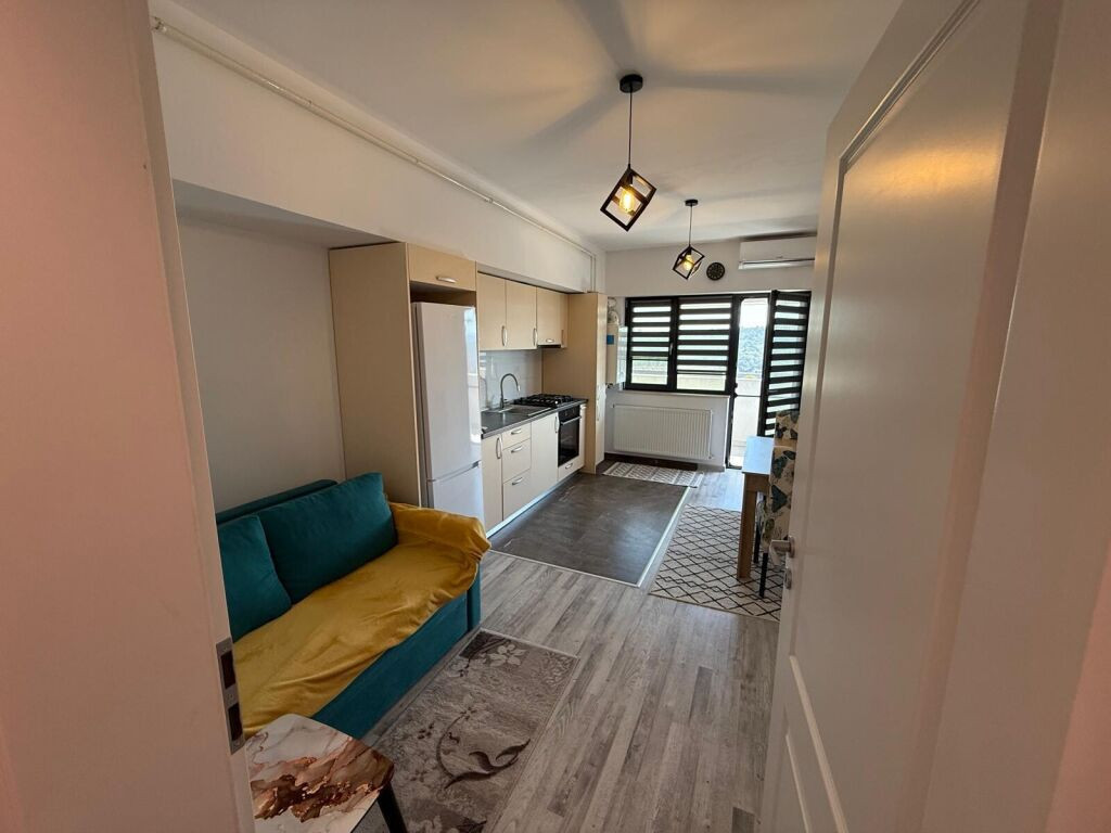 Apartament modern, complet mobilat și utilat – 43 mp + balcon de 7 mp Descoperă un apartament cu design practic și elegant, situat într-un ansamblu rezidențial nou, la etajul 10/10, cu vedere laterală și către pădure. Detalii principale: - Suprafață utilă: 43 mp - Balcon: 7 mp, cu acces atât din living, cât și din dormitor - Compartimentare open space: living, dining și bucătărie într-un spațiu aerisit - 1 dormitor, 1 baie spațioasă cu cadă, hol Dotări și finisaje: - Mobilat și utilat complet – mutare imediată - Centrală proprie și aer condiționat - Finisaje moderne: parchet masiv, gresie și faianță - Bucătărie modernă, complet echipată (frigider, plită pe gaz, cuptor electric, hotă) - Lift, interfon, videointerfon Avantaje: - Apartament poziționat pe mijloc – confort termic sporit - Balcon generos cu două intrări - Parcare exterioară disponibilă - Imobil nou, finalizat, cu structură pe cadre de beton și stare excepțională Acces facil la transport public către toate zonele orașului, dar și la ieșirea din oraș pentru deplasări rapide. Acest apartament este alegerea ideală pentru cei care caută confort, funcționalitate și proximitate față de natură și oraș, într-o locuință modernă. Se accepta credit MUTARE IMEDIATA