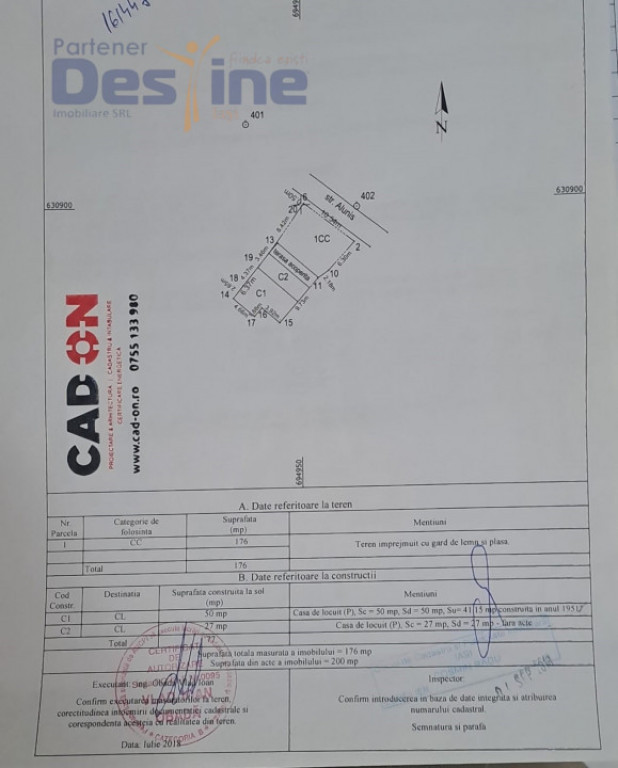 DESTINE IMOBILIARE Iași vă recomandă o CASA de 41.15 mp cu 2 camere DECOMANDATE, amplasata pe un teren de 176 mp, în zona Galata. • Locuința a fost construita in anul 1951, renovata in totalitate in anul 2016 • Este racordata la utilitati : apa, curent, gaz si fosa • Printre dotari putem aminti: CENTRALĂ TERMICĂ, tâmplărie PVC cu geam termopan, gresie, faianță, parchet, ușă metalică, BAIE CU GEAM, terasa inchisa de 27 mp si termoizolație exterioară. Proprietatea se afla la strada asfaltata, intr-o zona linistita si beneficiaza de o deosebita vedere panoramica. Documentația pentru perfectarea vânzării este la zi. Prețul de vânzare este de 76.900 euro usor negociabil. Detalii și informatii suplimentare: Ilie Loghin – 0757.910.832 COD OFERTĂ: P-2503 Id intern: P4486