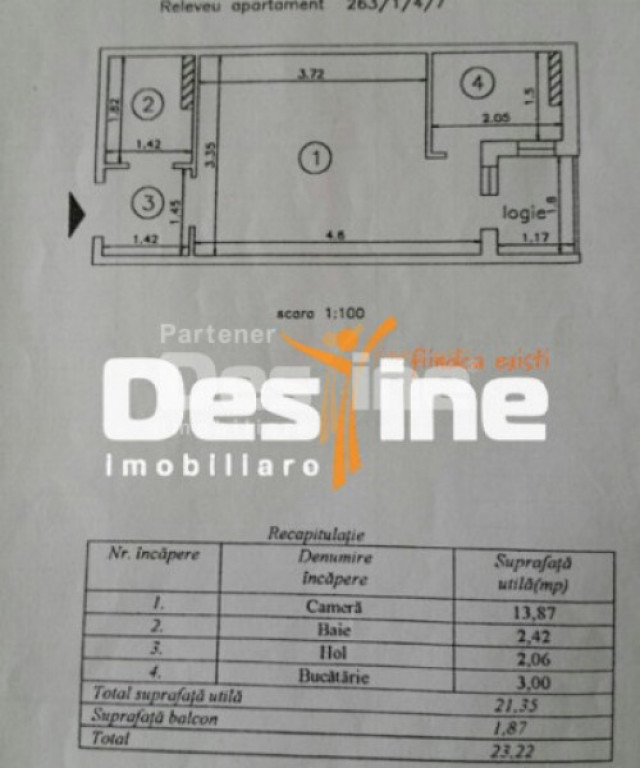 Destine Imobiliare vă prezintă spre vânzare o garsonieră situată în GALATA, poziționată la etajul 3 din 4, într-un bloc construit în anul 1978. Caracteristici generale: - Suprafață totală: 24 mp - Etaj: 3 / 4 - An construcție: 1978 Dotări și facilități: - Încălzire prin CET - Aer condiționat - Balcon - Se vinde PARTIAL MOBILATĂ Proprietatea reprezintă o oportunitate excelentă pentru investitie, având un randament bun și fiind pregătită pentru închiriere imediată, venitul estimat din chirie fiind de circa 250 euro/lună Preț: 49.990 euro Pentru mai multe informații sau programarea unei vizionări, vă stăm la dispoziție: 0757.910.832 Ilie Loghin Cod ofertă: P- 5236 ❗️❗️❗️IMPORTANT❗️❗️❗️ ????Această proprietate poate fi achiziționată și prin intermediul unui CREDIT, iar noi suntem aici să vă facilităm acest proces. ✅Datorită parteneriatelor noastre strânse cu cele mai importante instituții bancare, vă putem oferi asistență în obținerea finanțării potrivite pentru dumneavoastră: CREDIT IPOTECAR, PRIMA CASĂ sau de NEVOI PERSONALE. ????ZERO COSTURI SUPLIMENTARE ! ZERO COMISIOANE !???? ℹ️Pentru informații suplimentare, nu ezitați să ne contactați ! Id intern: P5236