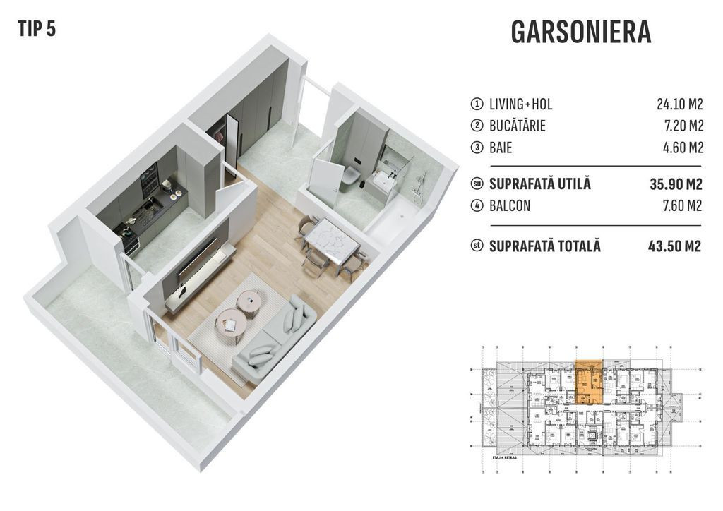 Comision 0%. Aceasta garsoniera se vinde doar la plata cash cu avans de 80-90%, la antecontract, nu prin credit bancar! Detalii si vizionari la tel:0749122233 Direct dezvoltator ce ofera un pachet de servicii complete(consiliere/asistenta notariala si brokeraj bancar, de la prezentarea ofertelor pana la predarea la cheie a proprietatii alese) indiferent de modalitatea de achizitie credit sau cash. Este ultima din ansamblul de care apartine, fiind situata pe etajul 4 dintr-un total de 4 etaje, bloc cu lift, avand predarea in noiembrie -decembrie anul acesta. Ansamblul pe care vi-l aducem in atentie si din care face parte si apartamentul prezentat, ofera garsoniere, studiouri, 2 camere total decomandate si 3 camere total decomandate, cat si parcari exterioare(7500 Euro cu TVA inclus 9%) sau acoperite(9000 Euro cu TVA inclus 9%). Locatia, ofera o multitudine de avantage, in functie de criteriile urmarite de fiecare client in parte. Va asteptam la biroul nostru de vanzari din Popesti-Leordeni, str. Biruintei nr. 51-57, Astrelor Residence, bl.2, ap.4(avand accesul prin gradina aferenta apartamentului din spatele blocului; este necesara(de preferat) o programare de pe o zi pe alta, pentru a pregati intalnirea dorita, in care sa putem tine seama de preferintele Dvs. putand oferi si alternative pe orice alt proiect/ansamblu pe care-l avem in portofoliu. Daca ne contactati la tel: 0749122233, in functie de disponibilitatea la momentul respectiv, putem avea si o intalnire ad-hoc.