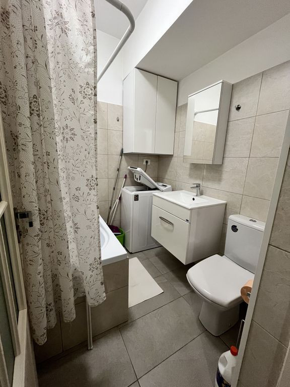 Proprietar, inchiriez(prin agentie/tel: 0720002332), fiind disponibila imediat(se acceptă animale de companie de talie mica si medie, "educate"), garsoniera dubla(apartament tip studio), avand living open-space cu bucătărie și dormitor separat. Apartamentul beneficiază si de un loc de parcare usor accesibil si generos(se poate parca si un van) inclus in pret. Se solicita, conform uzantei in domeniu, in momentul inchirierii, plata valorii cuantumului dintre: valoarea chiriei pentru o luna, garantia reprezentand valoarea unei luni de chirie si comisionul agentiei reprezentand jumatate din valoarea unei luni de chirie(platit o singura data, in momentul inchirierii), adica in momentul semnarii contractului aveti de platit 420+420+210=1050euro(echivalent lei la cursul BNR din ziua platii). Detalii: -Finisaje de calitate, tâmplărie pvc Veka, uși de interior elegante cu geam Porta Doors, ușa metalica la intrare. -Apartamentul este igienizat recent si arata exact ca în fotografii, nu necesită nicio amenajare suplimentară — doar vă aduceți lucrurile personale. -Este situat foarte aproape(200m) de stația STB de pe șoseaua Olteniței/Pârâul Rece, cu conexiuni către București/Piață Sudului(5min cu masina personala, 10minute cu STB) sau sector 3(Dristor, 1 Decembrie, N. Teclu, etc). -Bucătărie complet echipată: mobilă MDF realizată pe comandă/plită și cuptor Arctic/mașină de spălat vase Hansa, incorporata/combină frigorifică Heinner, 268 l, clasa A+/cuptor cu microunde Beko Confort: centrală termică Immergas 24 kW, cu termostat wireless/Aer condiționat Star Light 12.000 BTU, cu Wi-Fi/ Mașină de spălat rufe Whirlpool, încărcare verticală Dotari: - Dormitor mobilat: pat dublu 140cm, cu spațiu de depozitare + dressing + comodă si TV LG 80 cm + noptieră - Living: canapea extensibila Ikea + comoda si TV Smart 108 cm - Hol: dulap umerașe si pantofar, integral MDF NU se accepta fumatul in interiorul apartamentului.