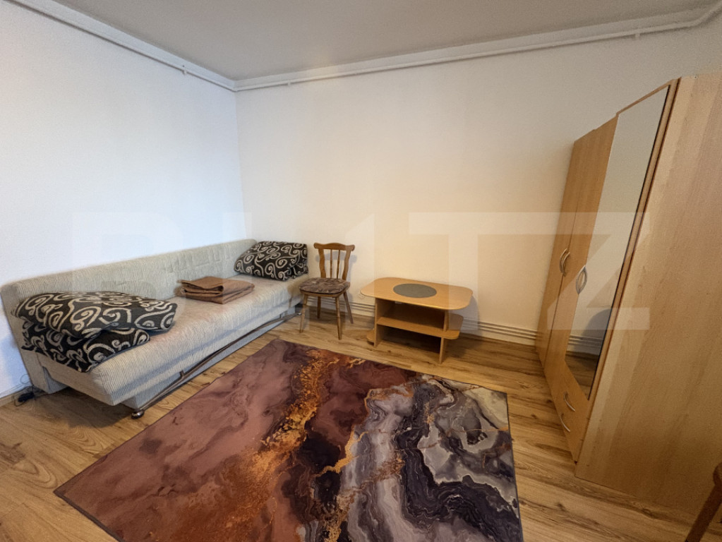 Blitz vă propune spre închiriere o garsonieră situată în cartierul Gheorgheni, într-o zonă foarte bine conectată, la doar 2 minute de stațiile de transport în comun și în proximitatea magazinelor. Locuința are o suprafață utilă de 33 mp și este compartimentată practic, oferind un spațiu deschis, ușor de utilizat și adaptat nevoilor zilnice. Este situată la parter, ceea ce oferă acces facil, fiind potrivită pentru persoane care caută confort și accesibilitate. Garsoniera este mobilată și utilată, dispunând de: * canapea extensibilă * bucătărie mobilată * frigider și aragaz * baie cu cadă * centrală termică proprie Disponibilă imediat. Cod ofertă / ID BLITZ: P170398 Id intern: P170398
