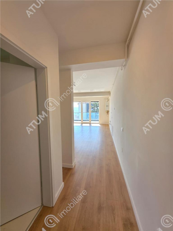 De vanzare studio in zona Industriala Vest din Sibiu, orientat catre sud, pozitionat la etajul 1 din 2 al unui bloc tip vila compus din Parter 2Etaje si doar 2 apartamente pe nivel, ce dispune de locuri proprii de parcare, acces securizat, izolatie exterioara si acoperis din tigla. Locuinta are o suprafata utila de 37.5 mp si este compartimentata astfel: la intrare un hol de 3 mp, baie cu cada si sistem de aerisire de 4.5 mp si o camera open-space de 30 mp. Amenajarile interioare au fost facute in anul 2025, imediat dupa finalizarea constructiei vilei, parchet de 10 mm, usi interioare de lemn, obiecte sanitare, zugraveli in lavabila alba. Studioul dispune de dotari moderne precum usa metalica de acces antiefractie placata cu panou MDF, centrala termica proprie pe gaz cu termostat wireless si incalzire in pardoseala, tamplarie PVC cu geam termopan cu 5 camere si 3 foi, instalatie electrica din cupru trasa prin coperx cu tablou general si sigurante pentru consumatorii de putere. ln plus, apartamentul dispune de loc de parcare propriu, marcat si delimitat. Valoarea de achizitie este de 80.700 euro putand fi achizitionata prin credit bancar sau surse proprii, pretul ramane la fel indiferent de metoda aleasa. ID intern: 3350.