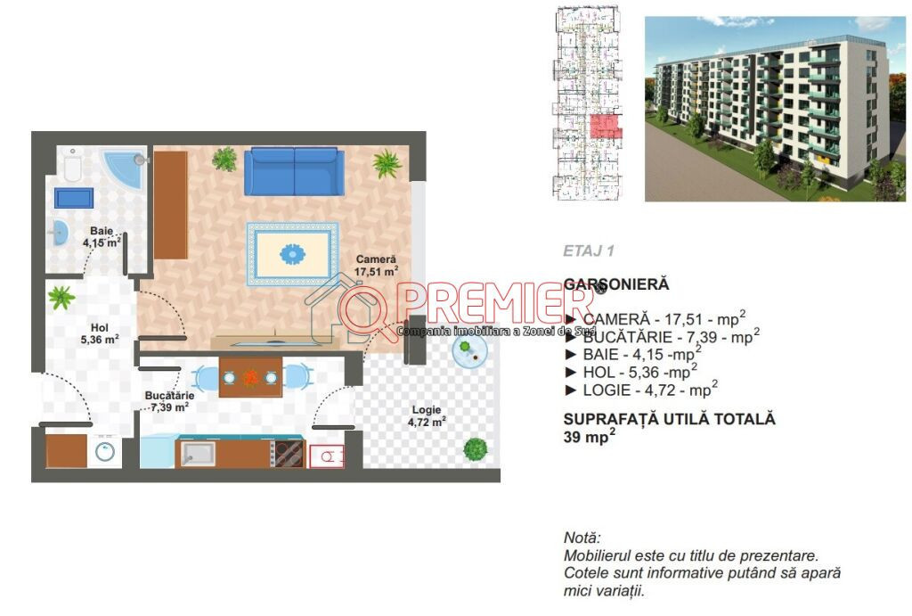 Vanzare Garsoniera 39 mp - Metalurgiei - 12 min Metrou Aparatorii Patriei Garsoniera este situata intr-un ansamblu nou, 2 blocuri, intrare cu bariera securizata, la 12 minute de stația de metrou Apărătorii Patriei. Data predare : Iunie 2026 Garsoniera este situata la etajul 3 al unui bloc de 6 etaje si are si balcon de 4,72 mp - Pret : 67.500 Euro + TVA - Avans 15% - Se acceptă și plata prin credit bancar – cu suport complet pentru întocmirea dosarului. - Dotări și finisaje premium incluse : - Gresie, faianță, parchet, uși interioare - Centrală termică în condensație și încălzire în pardoseală - Baie complet utilată - Racordare la toate utilitățile orașului Preț locuri de parcare: - Suprateran: 10.000 € (TVA inclus) - Subteran: 15.000 € (TVA inclus) Imaginile sunt cu titlu de prezentare. Poti alege finisajele dorite din gama de finisaje oferite de dezvoltator! Proiect in derulare. Predare August 2026 0% comision! Pentru mai multe detalii sau o vizionare - 0730.170.085 - Daniela Azarmaneche Serviciul nou oferit de PREMIER Imobiliare! Solicita acum VIZIONARE ONLINE pentru aceasta proprietate! COMISION 0% Această proprietate se poate achiziționa prin orice tip de credit bancar. Departamentul nostru financiar Premier Credit Hub vă stă la dispoziție GRATUIT (comision 0%) pentru: - identificarea celei mai bune soluții de finanțare; - întocmirea dosarului bancar complet; - obținerea rapidă a creditului necesar achiziției. Beneficiați de un serviciu ALL IN ONE, cu acces direct la ofertele tuturor băncilor comerciale din România. Se acceptă inclusiv venituri din străinătate, astfel încât fiecare client să poată cumpăra în cele mai avantajoase condiții. Solicitați acum o simulare de credit direct din anunț sau cereți detalii consultantului Premier Imobiliare!