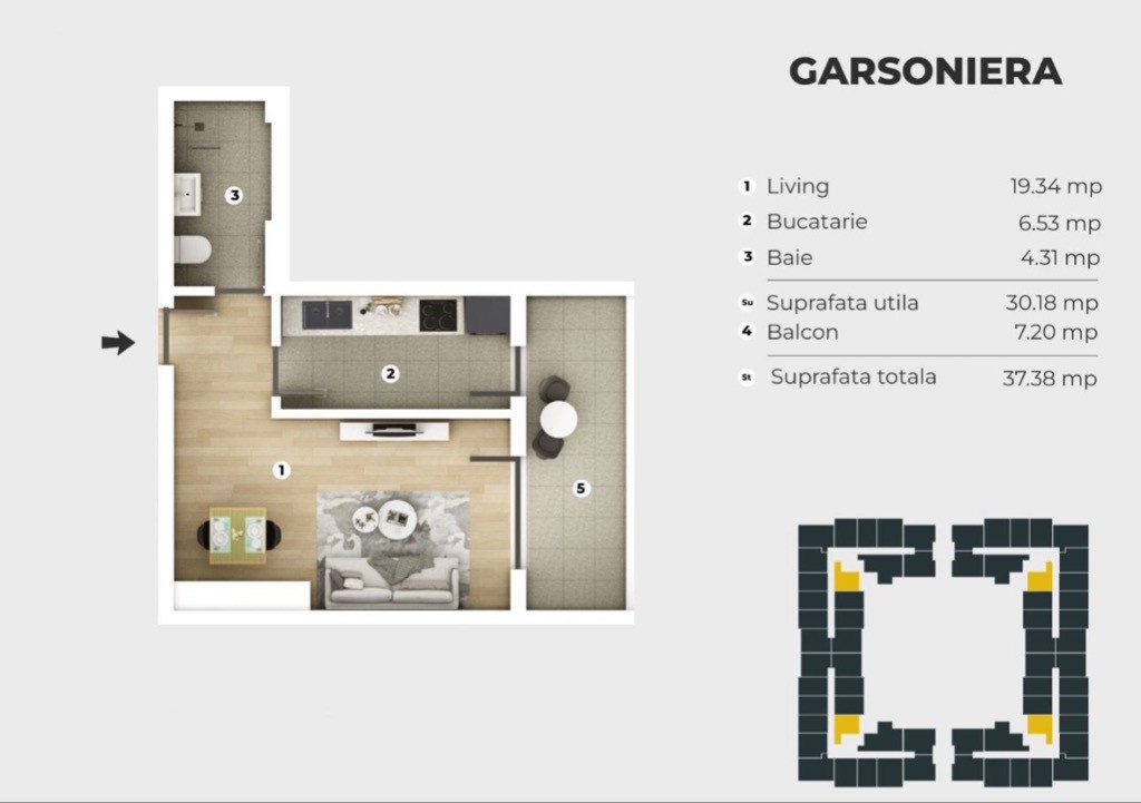 Garsonieră - 5 minute Metrou Berceni Suprafață: 37.38 mp Etaj 7/7 Bloc nou aflat în construcție cu termen de finalizare decembrie 2025. Facilități Premium: Piscină exterioară privată Parc amenajat e Panouri fotovoltaice Încălzire în pardoseală Videointerfon Centrală proprie prin condensare de 24KW Kit de aer condiționat inclus BONUS Mobilier de bucătărie inclus în preț Stații de încărcare pentru autoturisme electrice Parcări disponibile: Supraterane: 8.500 Euro + TVA Subterane: 10.000 Euro + TVA Localizare: Acces rapid la toate punctele de interes din oraș La doar 5 minute de mers pe jos până la stația de metrou Berceni Preț: 57.000 Euro Comision 0% Se acceptă orice modalitate de plată credit/ cash. Pozele afișate sunt cu titlu de prezentare și sugerează posibile amenajări interioare. Pentru detalii suplimentare și programări vizionări: 0787.751.547 – Andreea Popa