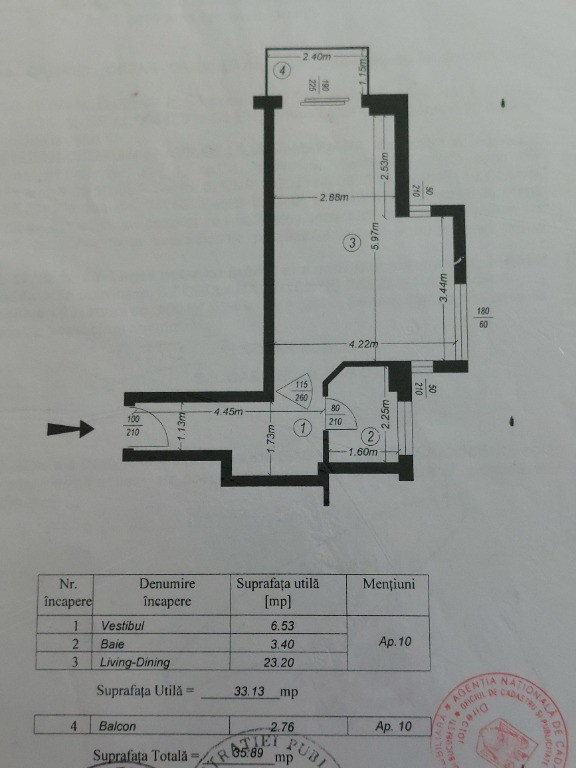 Suprafața utilă 33 m²