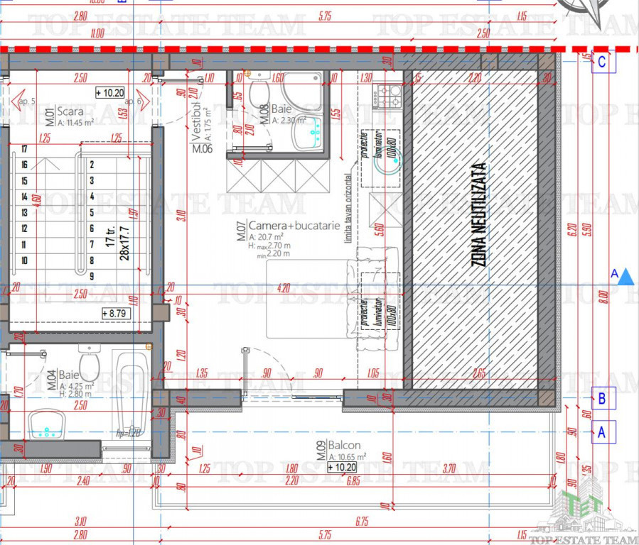 Garsoniera se afla la mansarda unui bloc boutique P 2 M in constructie (spatii depozitare bonus in laterale). Doar 2 garsoniere existente la mansarda 4 apartamente in blocul boutique tip vila.