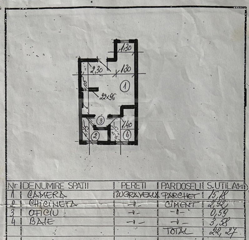 Suprafața utilă 22 m²