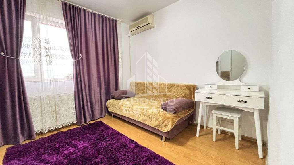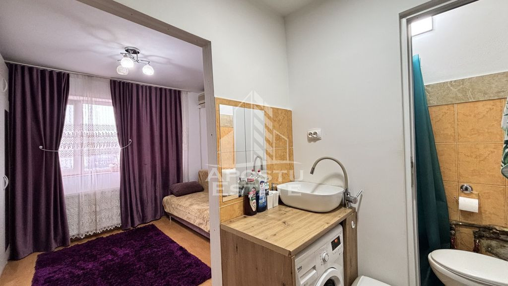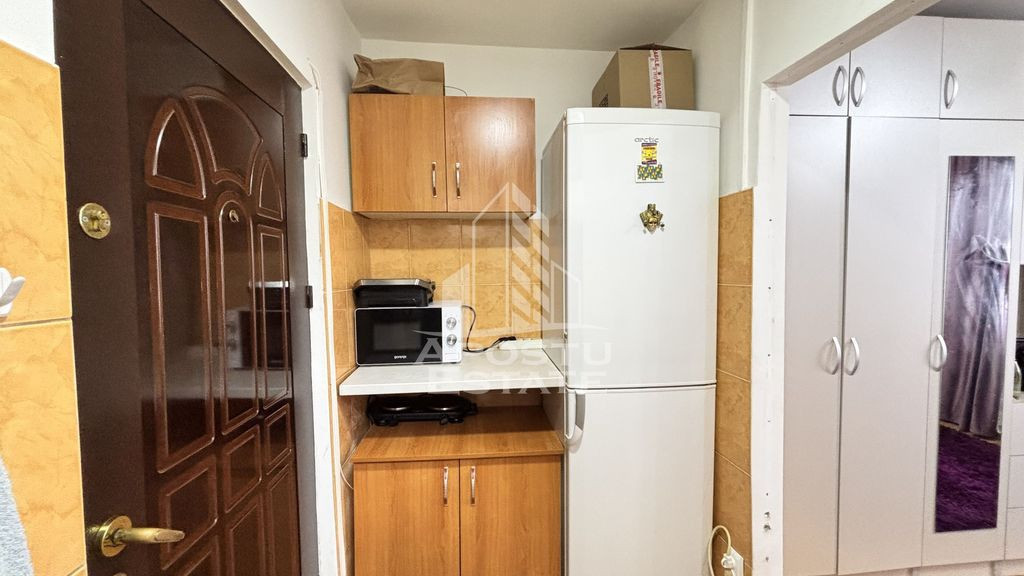 Apostu Estate va propune spre vanzare o garsoniera complet mobilata si utilata in zona UMT. Ideala atat pentru locuit, dar si ca investitie. In momentul de fata este inchiriata, iar chiriasul intentioneaza sa ramana daca preferati. Disponibila la etajul 3 din 4 intr-un bloc anvelopat, garsoniera beneficiaza de: - o camera complet mobilata cu o canapea si mobilier si geamuri termopan - o chicineta cu plita pe gaz, cuptor cu microunde, masina de spalat rufe, frigider - o baie cu dus si wc Confortul termic se realizeaza cu ajutorul termoficarii orasului cu punct termic in apropiere. Vecinatati: - Continental si TRW - ideal daca lucrati la una dintre cele doua multinationale - magazin alimentar in imediata apropiere si Profi - mijloace de transport in comun la 5 minutez Va asteptam cu drag la vizionare! Id intern: 2814148