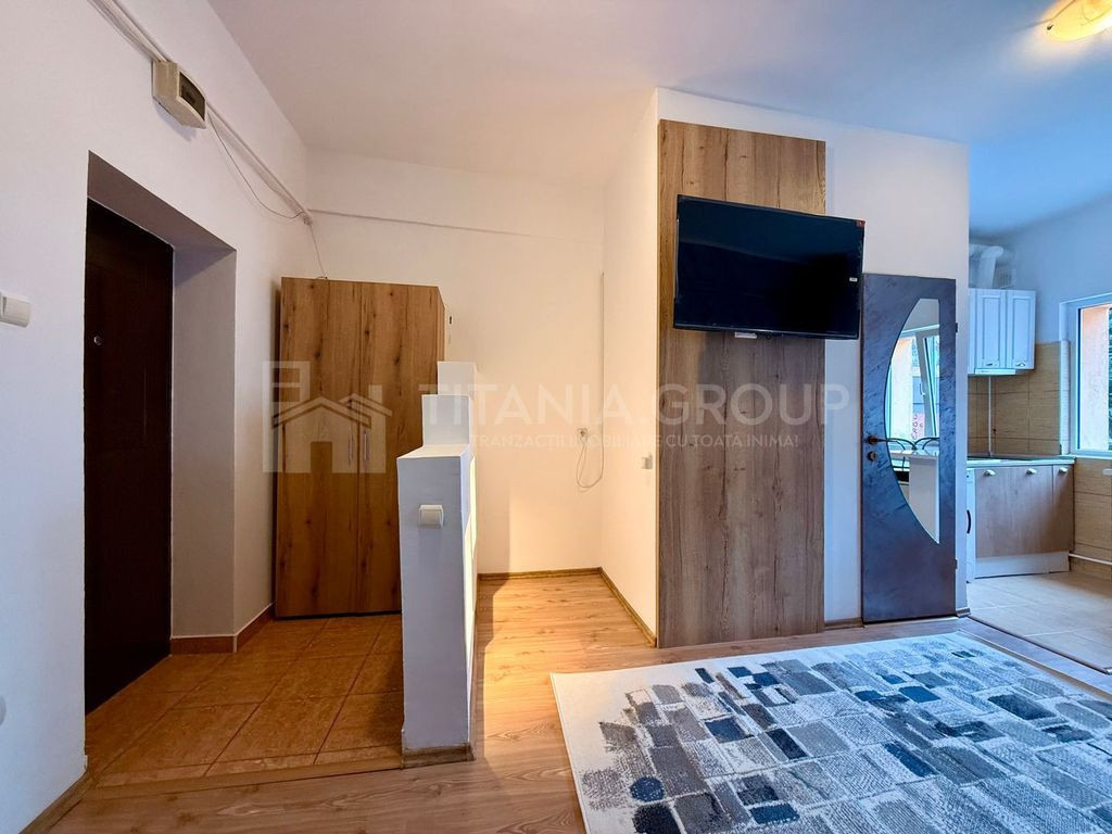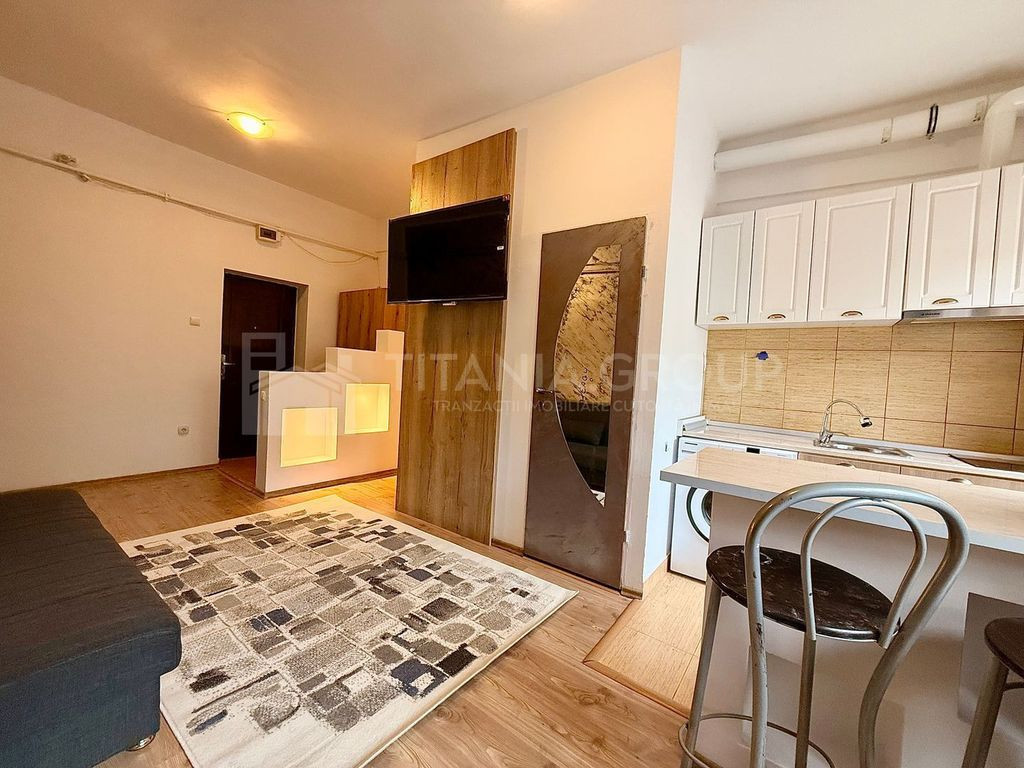 Dacă îți dorești să locuiești aproape de tot ce contează, această garsonieră este alegerea perfectă! Situată pe Strada Nicolae Titulescu, nr. 38, într-o zonă centrală, liniștită, dar foarte aproape de mall-ul AFI, restaurante, magazine, mijloace de transport și centre de business, locuința îmbină perfect confortul cu accesibilitatea. Spațiul este open-space, luminos și primitor, amenajat cu bun gust și complet mobilat. Bucătăria este utilată modern, iar zona de zi oferă un ambient relaxant. Proprietatea se afla la etajul 1/1, are structura open-space si este alcatuita din: - hol intrare; - camera dotata cu o canapea extensibila, televizor; - bucatarie open-space, mobilata si utilata; - baie. Aspecte importante: Pret: 350 euro/luna Garantie: contravaloarea unei chirii lunare; Disponibilitate imediata; Comision standard al agentiei. Pentru mai multe detalii sau pentru stabilirea unei vizionari, va rog sa ma contactati.