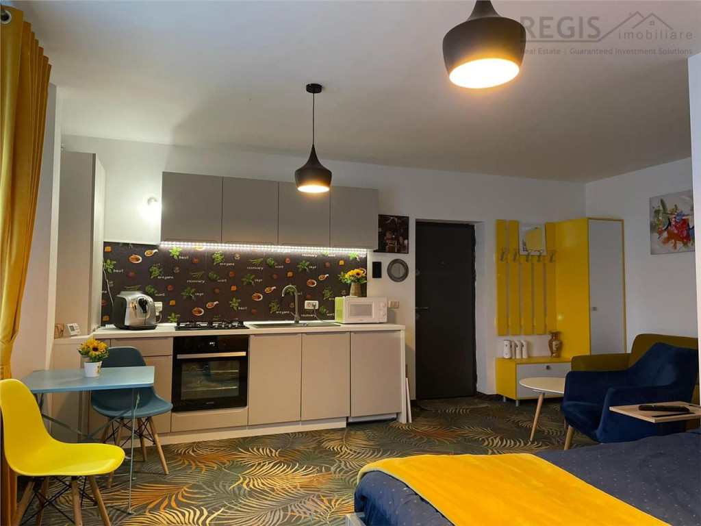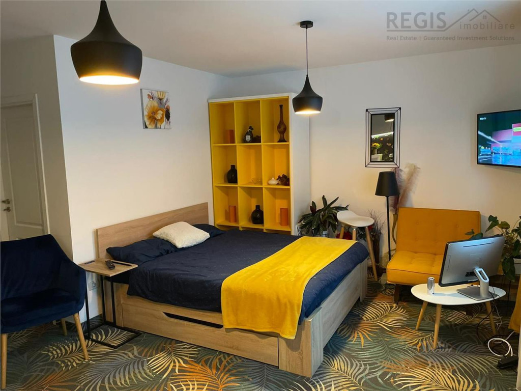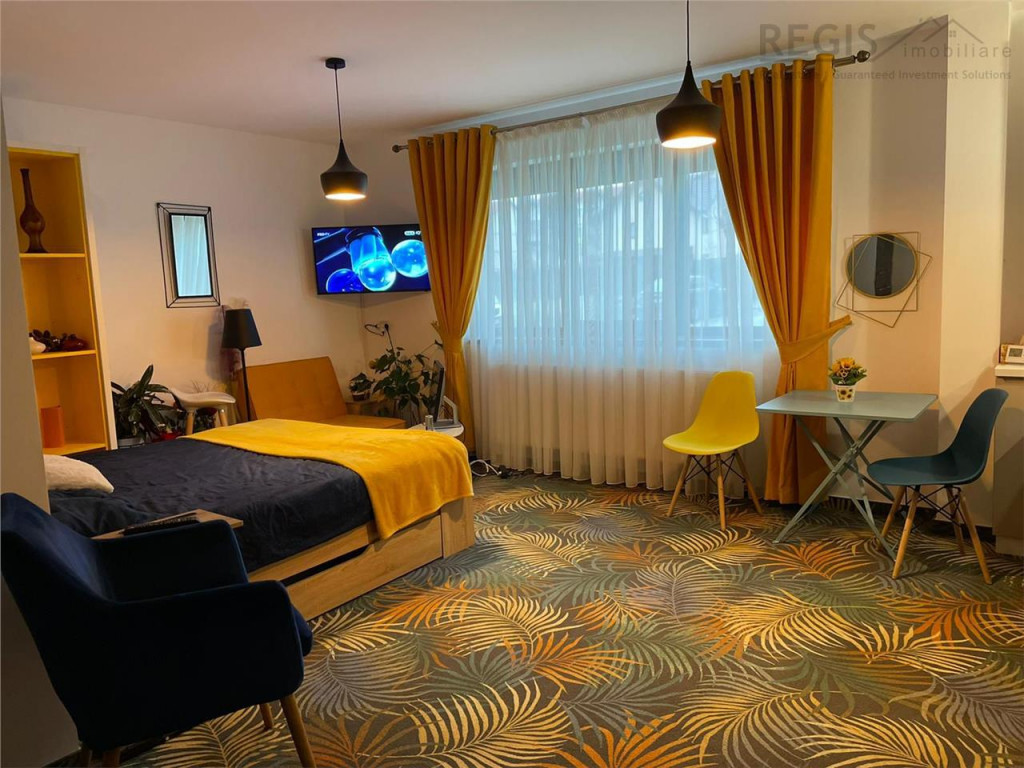 ID Intern:6600 REGIS Imobiliare va propune spre inchiriere o garsoniera moderna si primitoare, cu o suprafata de 30 mp, amenajata cu bun gust si atentie la detalii. Locuinta este complet mobilata si utilata, fiind pregatita pentru mutare imediata,este ideala pentru o persoana sau un cuplu care isi doreste confort si acces rapid catre principalele puncte de interes ale orasului. Interiorul este amenajat intr-un stil modern, cu mobilier de calitate, spatii de depozitare eficiente si electrocasnice complete (frigider, plita, cuptor, masina de spalat, TV etc.), oferind tot confortul necesar unui stil de viata urban. Situata intr-o zona foarte buna, la doar cateva minute de Coresi Shopping Resort Brasov, garsoniera beneficiaza de acces facil catre magazine, restaurante, mijloace de transport in comun si alte facilitati importante. Un mare avantaj este locul de parcare inclus in pret ndash; un beneficiu esential intr-o zona atat de cautata. Proprietatea este ideala pentru cei care isi doresc o locuinta cocheta, bine pozitionata si gata de mutat. Pentru mai multe detalii sau pentru programarea unei vizionari, nu ezitati sa ne contactati. Comisionul agentiei este de 50% tva din valoarea unei chirii. Vlad - Agent Imobiliar