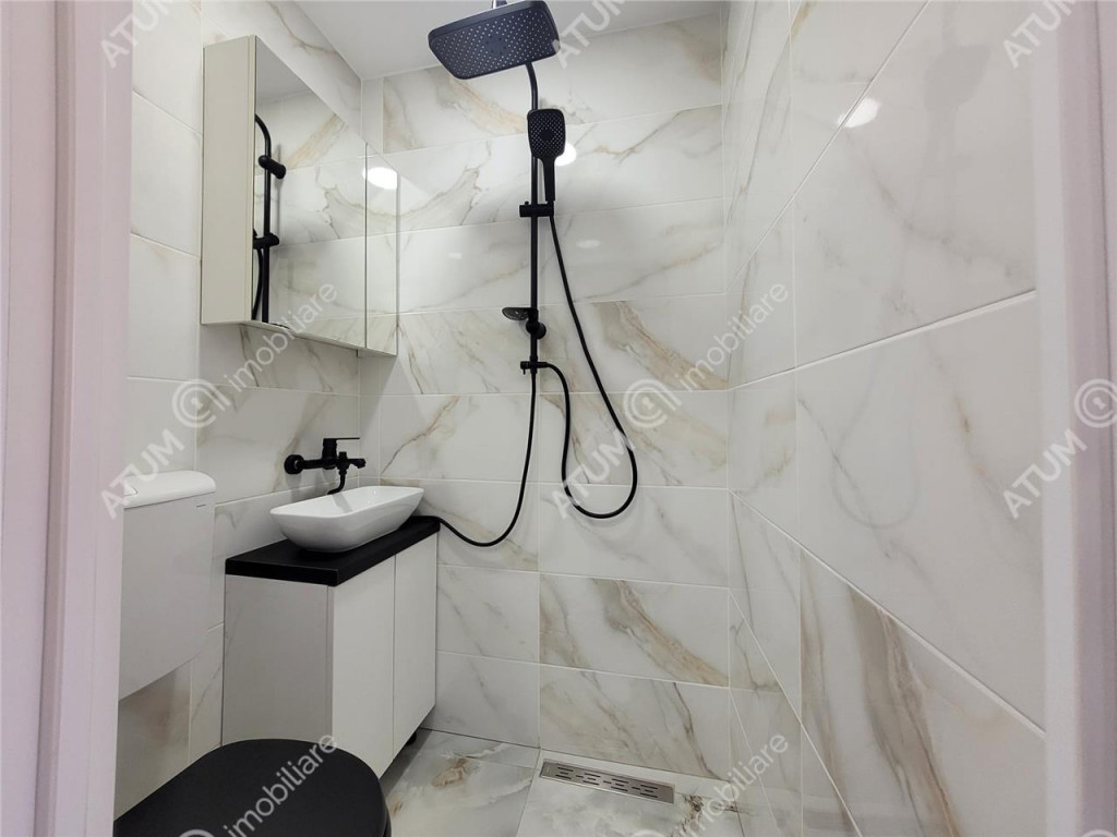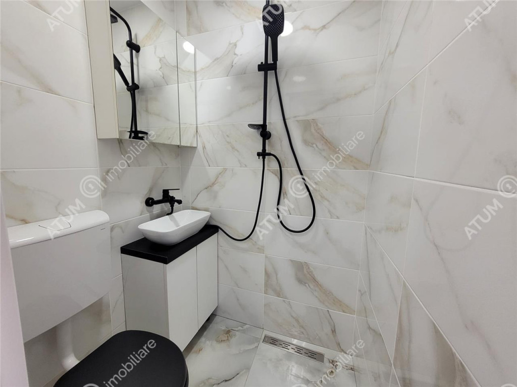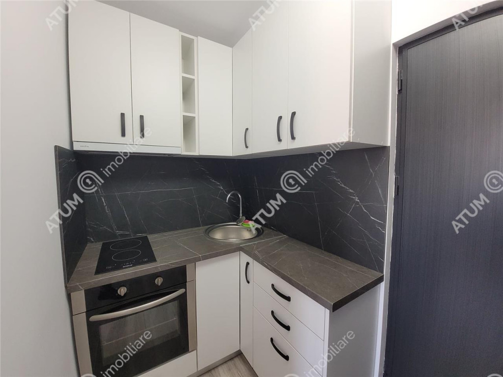 Va oferim spre vanzare o garsoniera renovata integral, in suprafata totala de 26 mp, situata la etaj intermediar, cu orientare ESTICA, localizat in zona Terezian din Sibiu. Garsoniera are suprafata utila de 22 mp care este compusa dintr-o camera, baie proprie si bucatarie. Locuinta a fost complet renovat icirc;n anul 2025 si beneficiaza de urmatoarele icirc;mbunatatiri: instalatie electrica noua din cupru, instalatie de apa si canalizare schimbata integral, pereti retencuiti, gletuiti si zugraviti cu vopsea lavabila alba. Pardoseala din living si bucatarie este finisata cu parchet laminat de 10 mm, iar baia este amenajata cu gresie de format mare si faianta pe pereti. Locuinta dispune de ferestre cu tacirc;mplarie PVC si geam termopan noi, usi interioare din lemn cu riflaj decorativ si o usa de acces metalica noua, placata cu panou MDF. Locuinta se preda mobilata si utilata cu mobilier de bucatarie realizat pe comanda si electrocasnice precum plita electrica, hota, cuptor electric, frigider, masina de spalat. Garsoniera se afla la etajul intermediar 3 al unui imobil cu 5 etaje ce dispune de acoperis din tigla, interfon pentru accesul in imobil. Din punct de vedere al locatiei acesta este pozitionat intr-o zona linistita la doar 10 minute de mers pe jos pana in Centrul Istoric al orasului, are acces facil la institutii de invatamant, magazine alimentare precum sunt Lidl, TransAgape, Profi si multe alte magazine aflate in apropiere. Valoarea de achizitie a garsonierei este de 46 500 euro negociabil. ID intern: 2950.