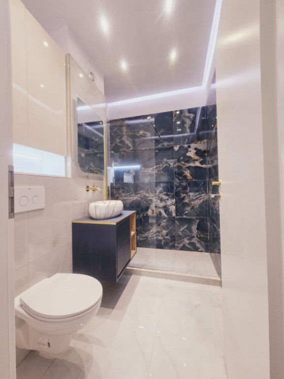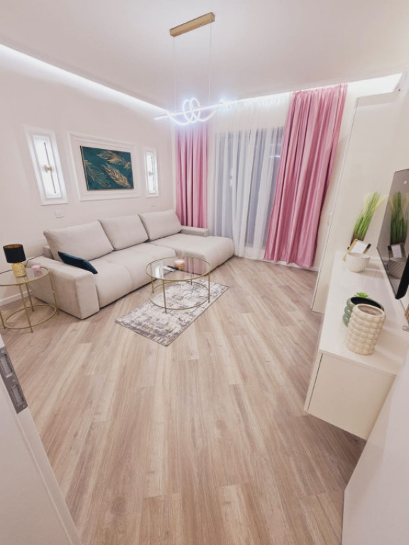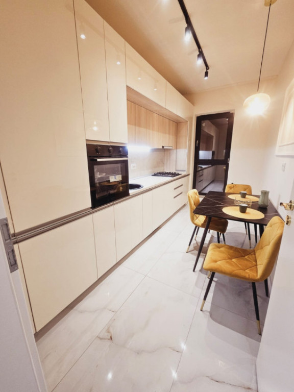 •	Finisaje de calitate: pardoseală din gresie cu aspect marmorat în bucătărie și hol, parchet laminat în living, mobilier minimalist și electrocasnice integrate;