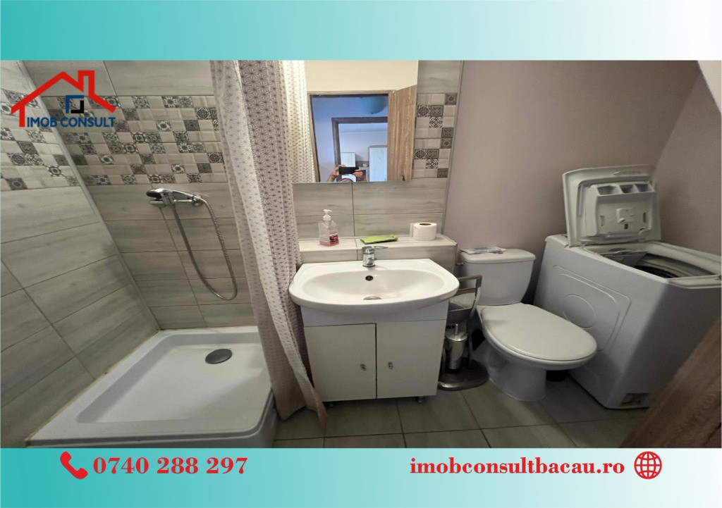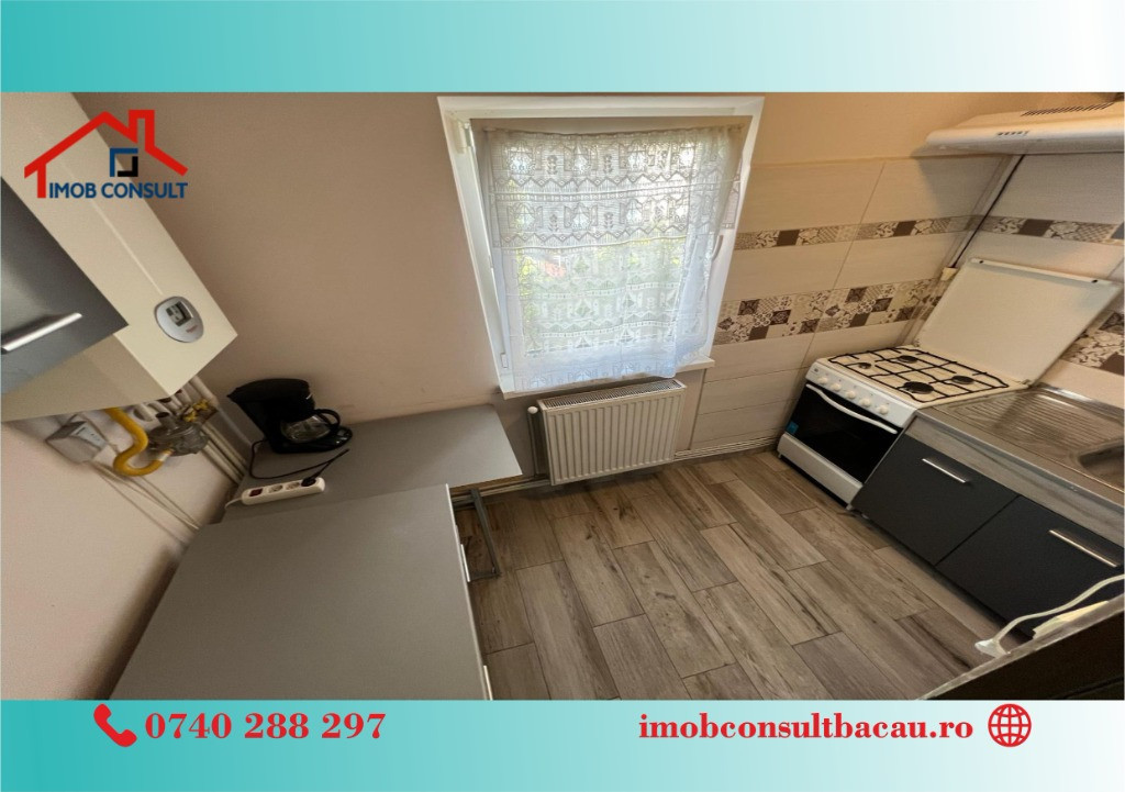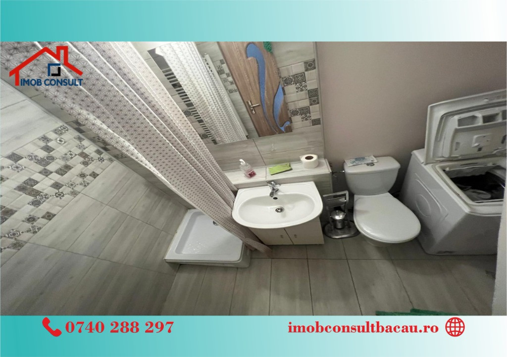 Echipa Imob Consult Bacau va propune spre inchiriere aceasta garsonieră situata in cartierul Nord, Bacău. Detalii esentiale: - 40 m²; - Decomandată; - Balcon închis; - Centrală proprie; - Instalatie aer conditionat; - Tâmplărie PVC; - Mașină de spălat; - Frigider; - Complet mobilată; - Bucatarie separata; - Baie separata. Locație excelentă: - Marketuri; - Farmacii; - Cafenele & restaurant; - Aproape de Arena Mall. Programează o vizionare! - Corina: 0740 288 297; - Cosmin: 0754 583 811, sau la sediul agenției noastre, Imob Consult Bacau, situat pe strada Banca Națională nr. 27 la intersecția cu Str. Neagoe Vodă, langa Irish Pub.